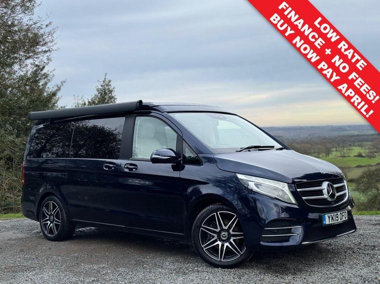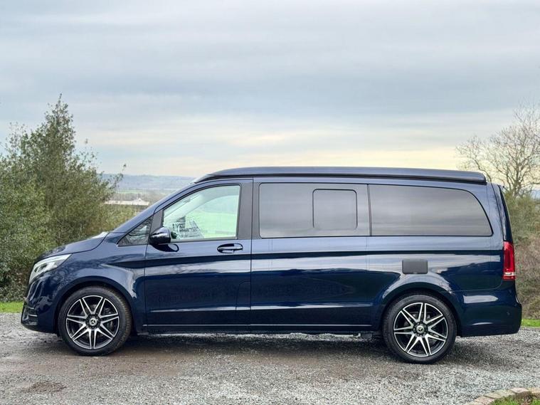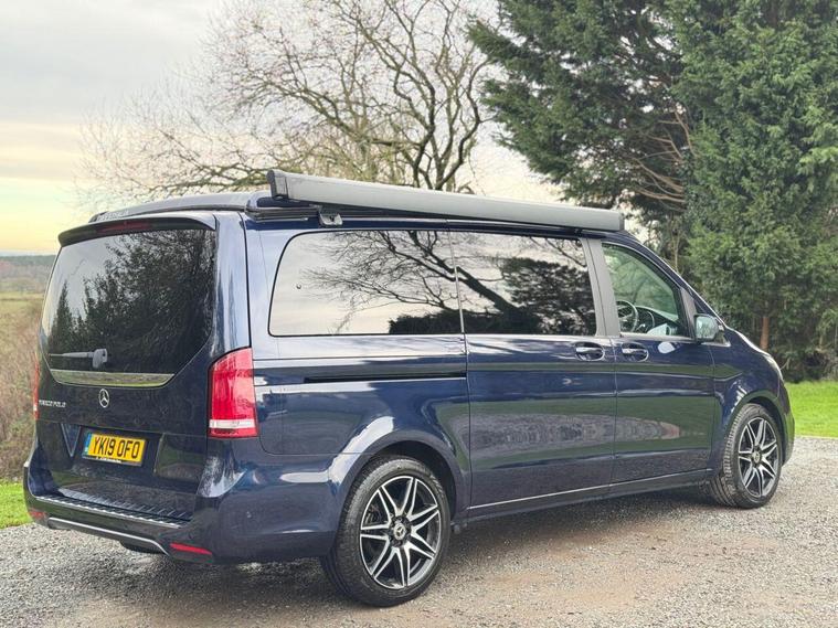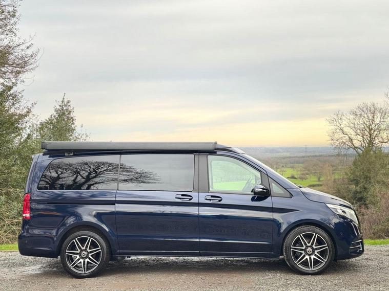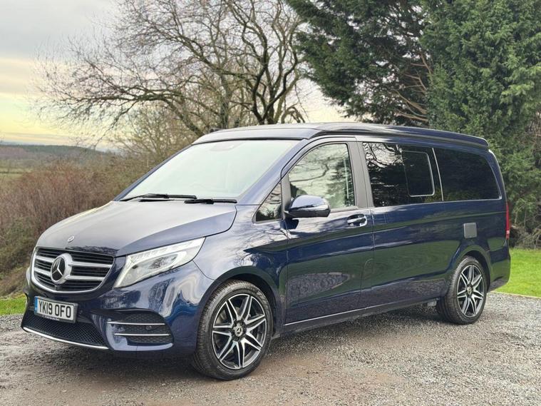 CAVANSITE BLUE WITH SILK BEIGE LUGANO LEATHER. 2 OWNERS FROM NEW. 2 KEYS. FULL SERVICE HISTORY + FULL MOT. The Marco Polo also offers a harmonious blend of sophistication, contemporary styling through out this incredibly versatile 4 berth 4 travelling seats van conversation. Together with a complete service history at 12159 miles, 14596miles and 17945 miles. With the electric sliding doors, you are greeted with the Luxurious interior that epitomizes Mercedes. Featuring the luxurious Silk Beige leather like fully electric two integrated travelling seats. Now rotate the passenger seat around, which ingeniously increases the seating capacity. Open the sliding doors, letting the fresh air flow through. Then of a night time will seamlessly transform into an extremely comfortable double bed, that integrates neatly into this area. Adjacent the galley style kitchenette. With 2- burner gas hobs, fridge. The ideal space for rustling up a quick snack/delicious meal. Above the class leading electrical pop-up roof (Easy Up) that elevates/retracts with ease. That provides a further double bed bed, where two adults can experience a cosy nights sleep. This makes up the four sleeping arrangements of this utterly exceptional Mercedes Marco Polo Automatic. That benefits from it's exclusive specification, such as diamond cut alloy wheels, cab air conditioning, solar panel, privacy glass, reversing camera, front / rear parking sensor, heated front seats, satellite navigation system, blue tooth, cruise control, electric sliding doors plus tailgate, out side shower point and will be supplied with all the book pack manuals, including two sets of keys. Ready to elevate your travel adventure together. All the vehicles are HPI checked/clear - Debit Card facilities (£500 Max Payment DEBIT + CREDIT Cards) - PAYMENT BY TRANSFER + FINANCE AVAILABLE, 36, 48, 60 months (Subject to status). 6 Month Safe and Sound Warranty Inclusive (Major mechanical Parts + Labour) Extended Warranty available up to 36 Months. Part-Exchange Welcome, 5 DAY DRIVE AWAY INSURANCE Available subject to status. VIEWING BY APPOINTMENT ONLY. To arrange a viewing please contact Andy Grant on 01527922042. Check our Website for EXTRA PHOTOS: - dealer's website