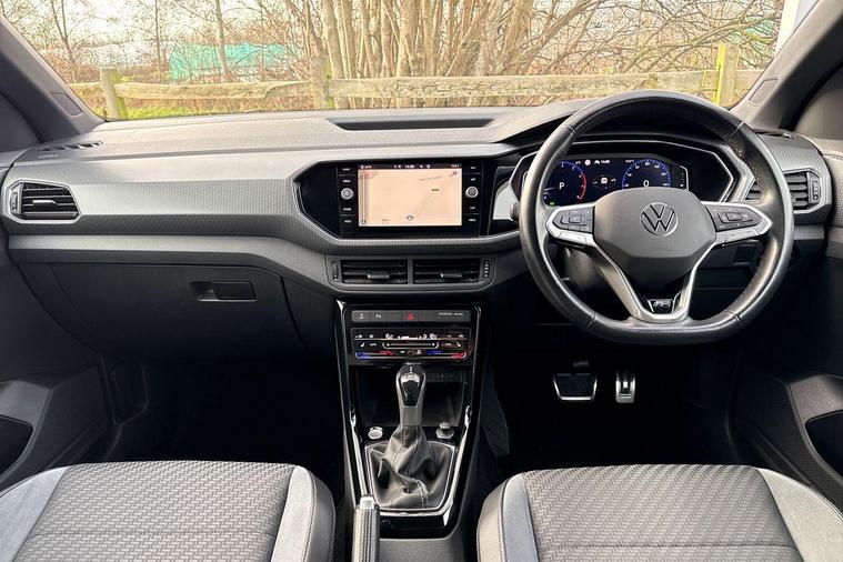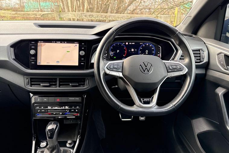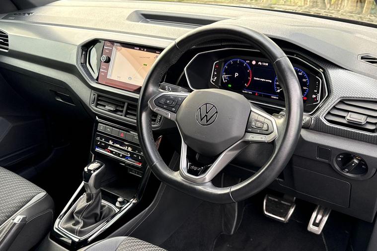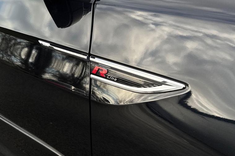 - Leather trimmed three spoke multifunction steering wheel with contrast stitching and aluminium inserts with R Line logo