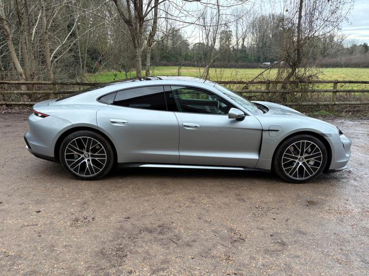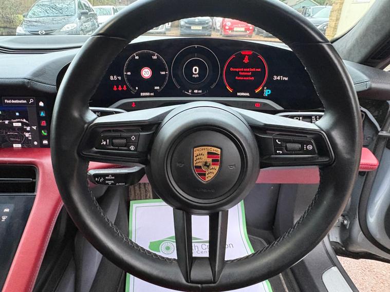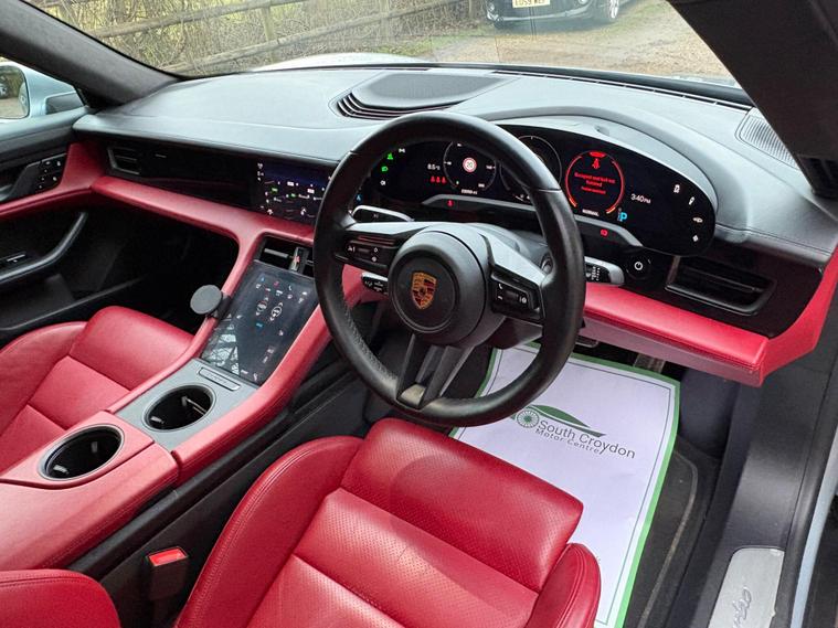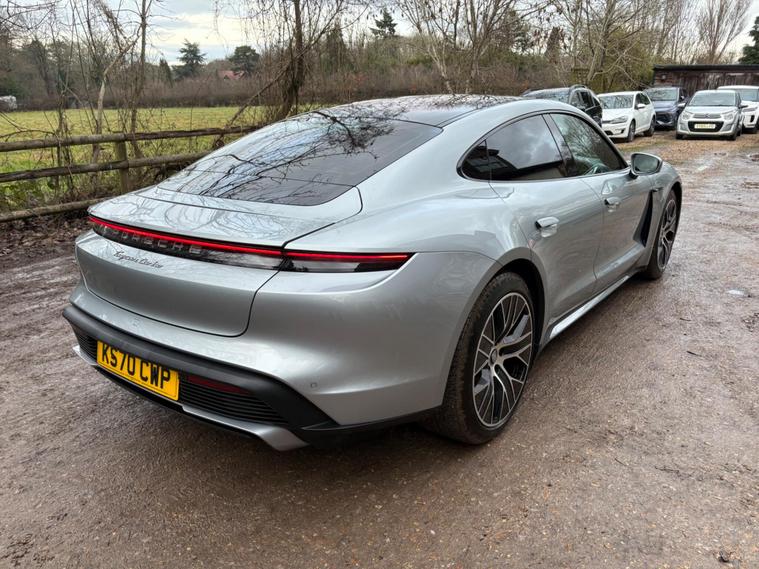 This 2020 Porsche Taycan Performance Plus Turbo presents an exceptional opportunity with remarkably low mileage for its age, having covered just 22050 miles. As a fully electric, four wheel drive saloon, this Turbo trim model boasts a substantial 93 kWh battery, offering a maximum range of 281 miles when new. It comes equipped with a suite of notable features including ParkAssist with a reversing camera for effortless manoeuvring, a Race Tex interior mirror trim panel, and a Mobile Charger Connect with Home Energy Manager for convenient charging. Further enhancing its appeal are the stylish 20 inch Sport Aero alloy wheels and a Type 2 public charging cable.Experience exhilarating performance with the Taycan's impressive acceleration, achieving 0 to 62 miles per hour in a mere 3.2 seconds, a figure that clearly sets it apart from many other vehicles. For home charging, a full charge using a 7kW connection takes approximately 13 hours and 30 minutes, while rapid public charging can replenish the battery from empty to 80% in as little as 25 minutes, ensuring you are always ready for your next journey..