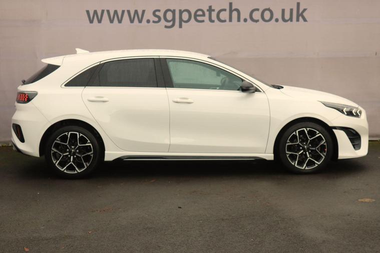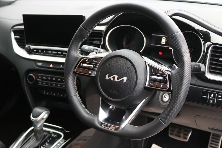 This 2025 Kia Ceed T GDi GT Line presents an exceptional ownership proposition, boasting a full dealership service history with its last service completed on 9th January 2026 at 9, 636 miles, and benefiting from an extensive remaining manufacturer warranty of 76 months. This single owner vehicle, registered in 2025, features a responsive 1.5 litre petrol engine meeting Euro 6 emissions standards. Inside, you'll find a comfortable and convenient driving experience with a heated steering wheel and heated front seats, perfect for colder mornings. Stay connected and entertained with Bluetooth functionality, and enjoy enhanced driving control with Drive Mode Select.The Kia Ceed T GDi GT Line offers a compelling package that stands out from the crowd. Its acceleration from 0 to 62 miles per hour in just 9.7 seconds provides a lively drive. The Smart Cruise Control with Stop and Go functionality adds a layer of ease to journeys, particularly in traffic. Furthermore, this model is noted for its low insurance group, making it an economical choice for many drivers. Practicality is also a key strength, with generous boot space designed to accommodate your luggage and shopping needs with ease..