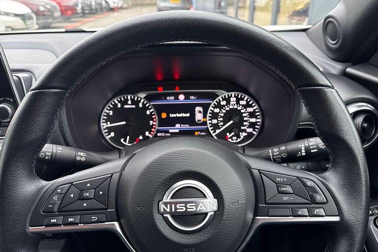 Discover this exceptional 2022 Nissan Juke DIG T N Connecta, boasting incredibly low mileage of just 8469 miles from its single owner. This stylish compact SUV is powered by an efficient 1.0 litre petrol engine, meeting Euro 6 emission standards. It comes equipped with modern conveniences such as LED headlights for clear visibility, rear parking sensors to assist with manoeuvring, and automatic air conditioning for a comfortable cabin environment. Stay connected and entertained with USB and AUX socket inputs, alongside seamless Bluetooth connectivity, all managed conveniently through the Intelligent Key with a push button start.This Nissan Juke offers impressive highlights that set it apart. Its remarkable fuel economy of 49 miles per gallon demonstrates its efficiency, making it a cost effective choice for your journeys. Furthermore, its low CO2 emissions indicate a more environmentally conscious performance compared to many other vehicles in its class. With its combination of advanced features, excellent provenance, and economic benefits, this Juke represents a smart and practical option..