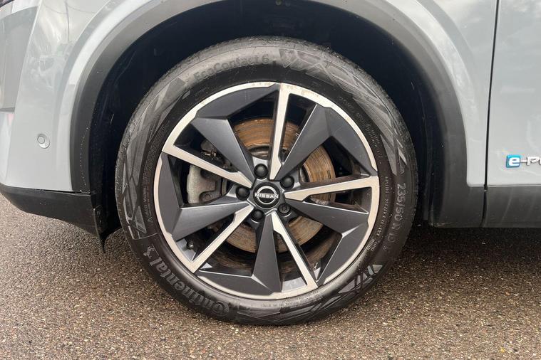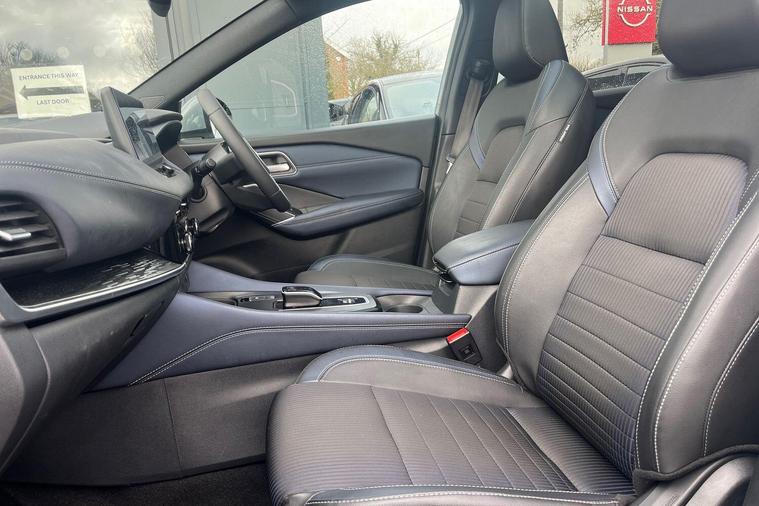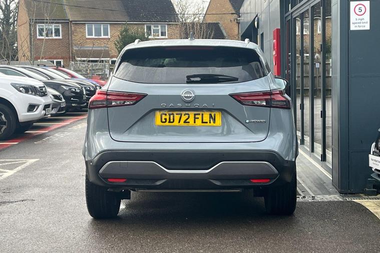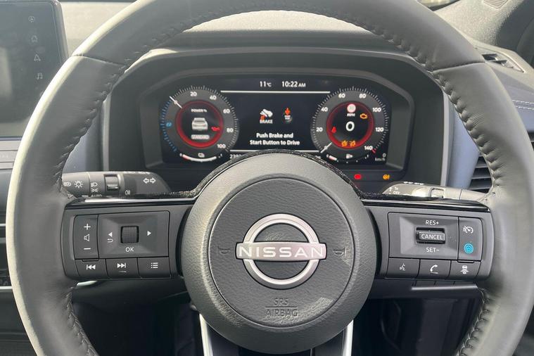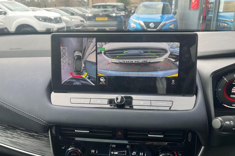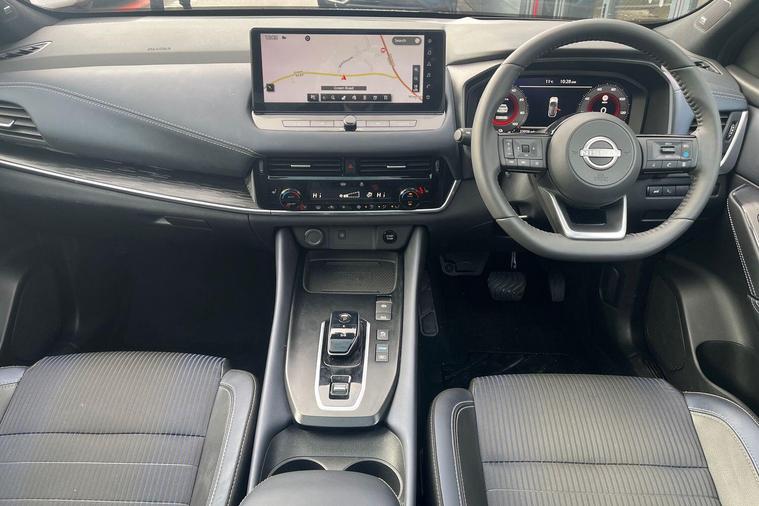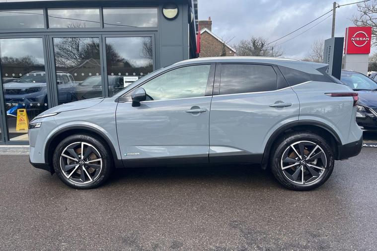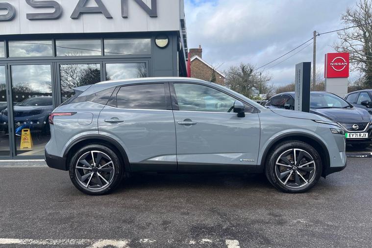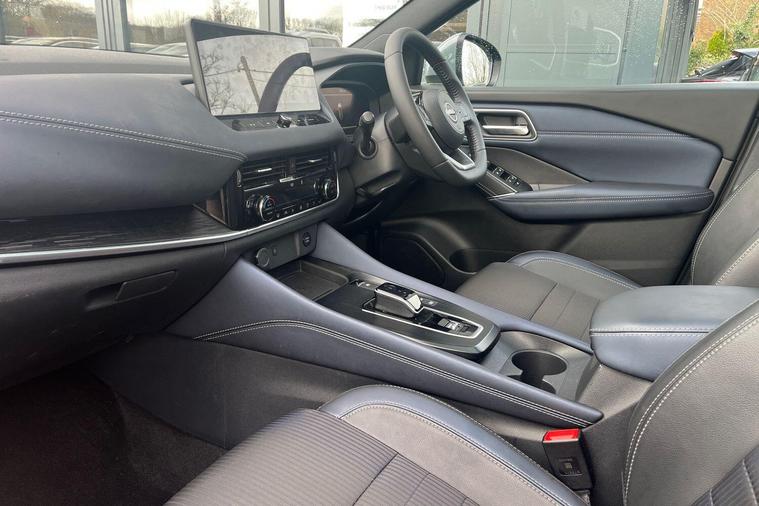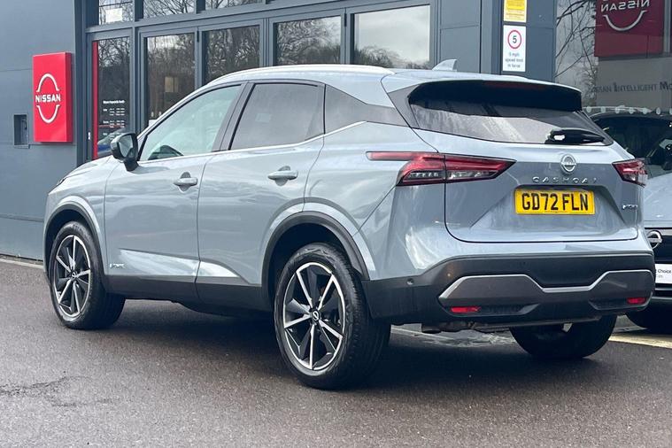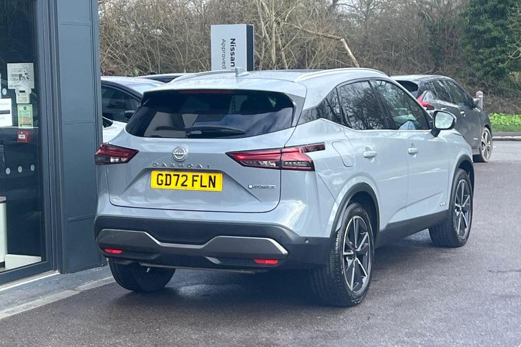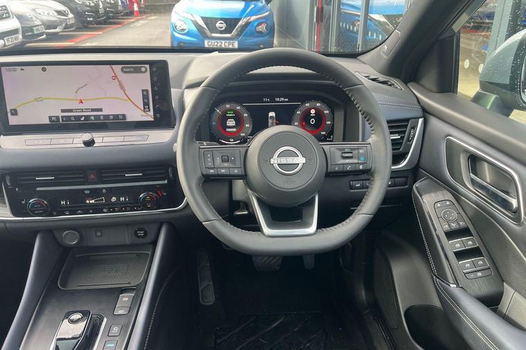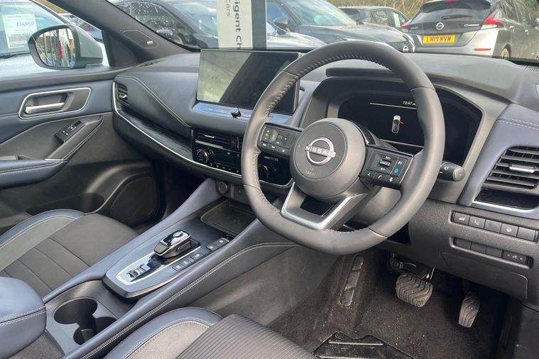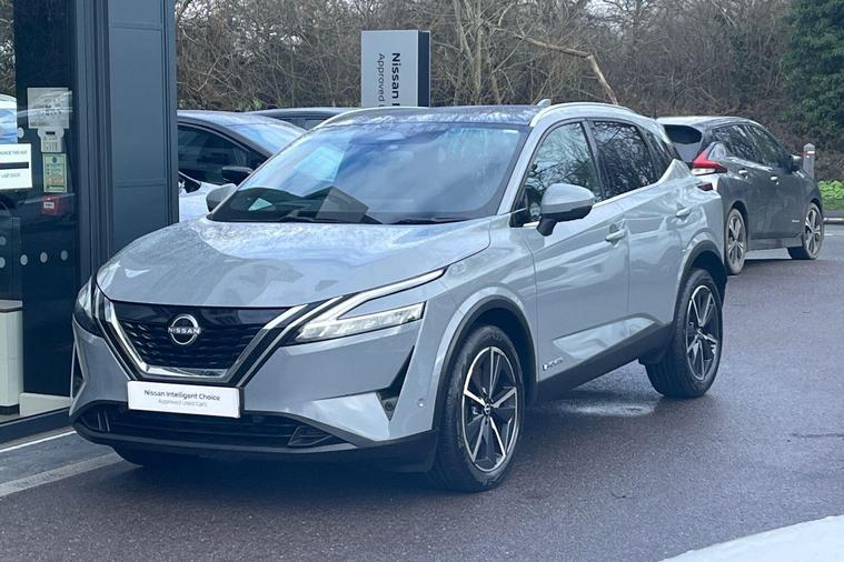 This 2023 Nissan Qashqai h e-POWER Tekna is a Nissan manufacturer approved vehicle with only one owner from new. It features a 1.5 litre petrol hybrid engine and meets the Euro 6 emission class. This Tekna trim level comes equipped with a Glass Roof Pack, which includes a fixed panoramic sunroof, and Automatic Dual Zone Climate Control with a pollen filter. For convenience, it offers wired Android Auto and an Advanced Windscreen Head Up Display, alongside rear parking sensors for easier manoeuvring.The Qashqai h e-POWER Tekna offers impressive performance, achieving 0 to 62 miles per hour in just 7.9 seconds. Its fuel economy is a notable highlight, achieving up to 53 miles per gallon, and it also boasts low CO2 emissions, indicating it is more efficient than many similar vehicles. Furthermore, you will appreciate the generous boot space, making it a practical choice for everyday use and longer journeys..