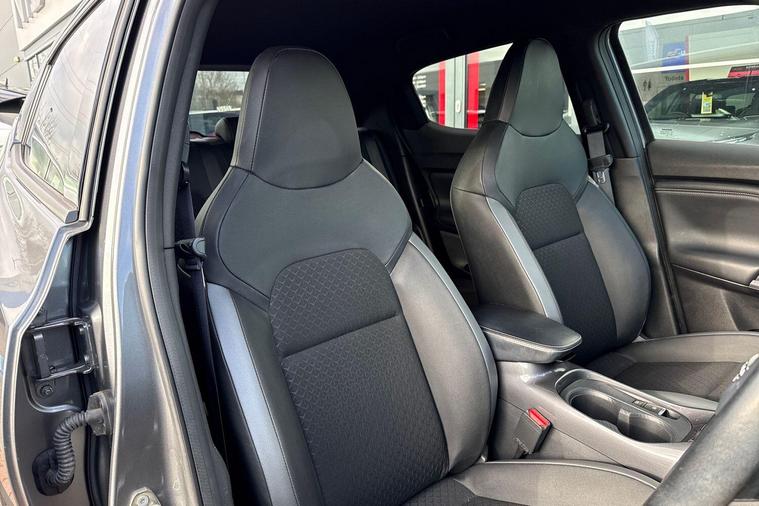 - Cloth upholstery with black and metallic grey syntech leather inserts