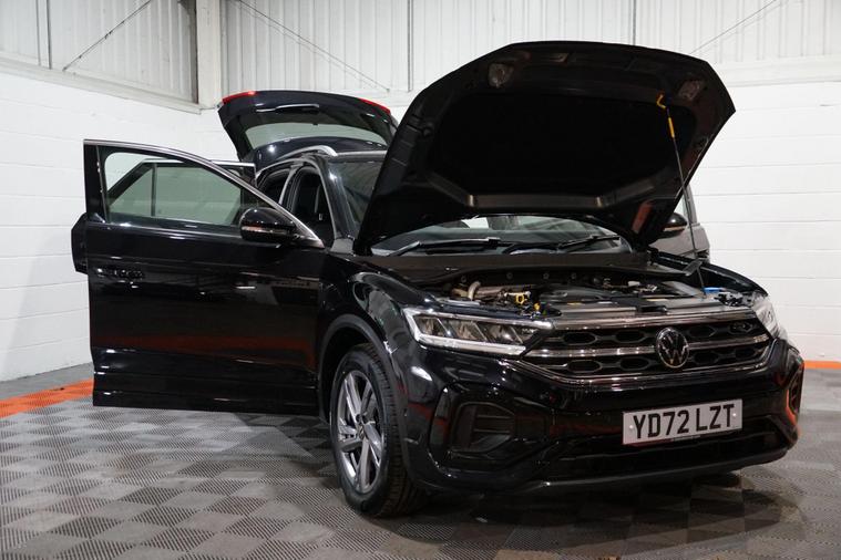 This Volkswagen T-Roc 1.5 TSI R-Line is a stylish and well-equipped compact SUV, finished in striking Deep Black Pearl Effect paint that complements its sporty R-Line design. With sharp exterior styling and a confident road presence, the T-Roc offers a perfect balance between practicality and modern design.Powered by the responsive and efficient 1.5 TSI petrol engine, it delivers smooth performance while remaining economical, making it ideal for both daily commuting and longer journeys. The R-Line trim enhances the driving experience with a more dynamic look and feel throughout.Inside, the cabin is modern and driver-focused, featuring piano black decorative inserts that add a premium touch. Comfort and convenience are well catered for with heated seats, adaptive cruise control for relaxed motorway driving, and keyless entry and start for everyday ease of use. Apple CarPlay provides seamless smartphone integration, while the rear-view camera offers added confidence when manoeuvring.The vehicle also benefits from a full service history, giving added peace of mind and evidence of careful ownership. Overall, this T-Roc R-Line is a refined, comfortable and versatile vehicle, offering strong performance, desirable technology and an excellent specification in a smart, contemporary package..