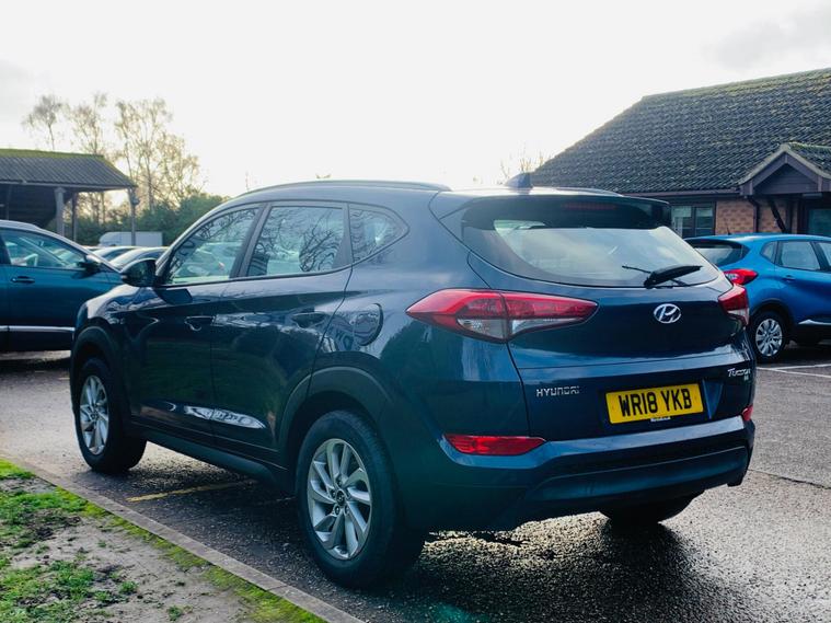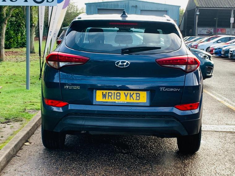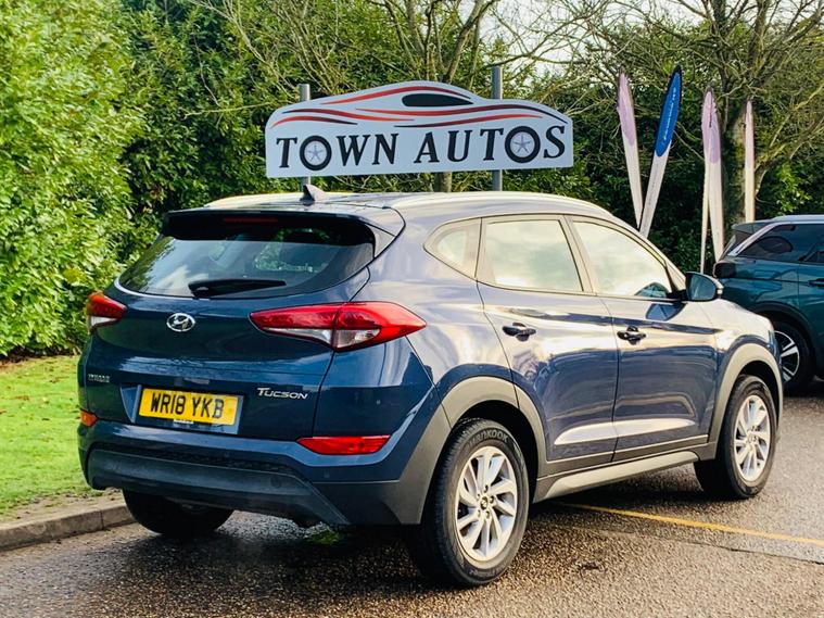 This 2018 Hyundai TUCSON GDi SE Nav offers exceptional value with its remarkably low mileage of just 45845 miles for its age. This Euro 6 compliant 1.6 litre petrol SUV comes equipped with the SE Nav trim, featuring an 8 inch touchscreen satellite navigation system complete with Traffic Messaging Channel, Mapcare and Tom Tom LIVE Services, alongside a helpful reversing camera for effortless parking. You'll also appreciate the dual zone climate control with ioniser, rear parking sensors, and seamless Bluetooth connectivity for all your devices. The automatic headlights with a dusk sensor ensure you always have optimal visibility. This TUCSON stands out with its impressive fuel economy of 45 mpg, making it an economical choice for your journeys. Its low insurance group rating further contributes to its affordability. The generous boot space provides ample room for all your luggage or shopping needs. These highlights demonstrate how this particular Hyundai TUCSON offers a superior ownership experience compared to other vehicles in its class..
