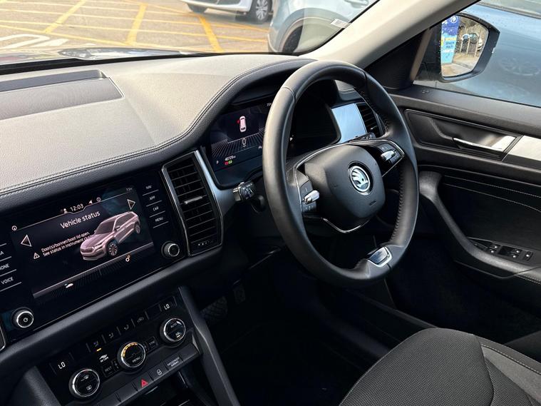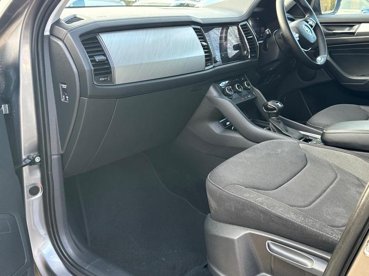 With an exceptionally low mileage of just 1111 miles, this 2022 Skoda Kodiaq TSI SE represents a remarkable find. This single owner vehicle, finished in the SE trim, boasts a responsive 1.5 litre petrol engine and a Euro 6 emission class, making it an efficient choice. Inside, you'll find comfortable seating for seven, perfect for families or those who need extra space. The Kodiaq is equipped with KESSY keyless entry and start, allowing for effortless access and ignition. Driving is made easier and safer with LED headlights featuring daytime running lights and rear parking sensors.The Kodiaq TSI SE also offers a dual zone climate control system with a humidity sensor, ensuring comfort for all occupants. Connectivity is seamless thanks to SmartLink, which includes Android Auto and Apple CarPlay, keeping your favourite apps accessible on the go. The acceleration from 0 to 60mph in just 9.5 seconds demonstrates its capable performance. Furthermore, its low insurance group rating indicates that running costs are kept to a minimum, setting this Kodiaq apart from many other vehicles in its class..