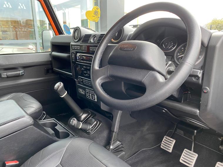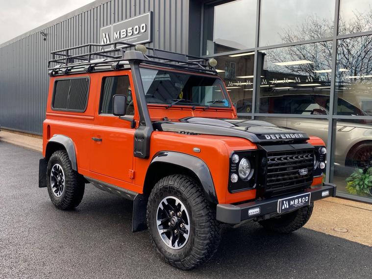 This Land Rover Defender 90 Adventure is a rare limited-edition British 4x4, one of 600 built and equipped with desirable factory upgrades. The Adventure was one of three limited-run models announced by Land Rover to mark the end of ‘classic’ Defender production. As standard, the variant featured an engine upgrade, LED headlights, an expedition roof rack, a snorkel, a rear ladder, underbody and sill protection plates, and Windsor leather upholstery with aluminium trim. This example is finished in Phoenix Orange, offset by a contrasting gloss-black roof, wheel arches, bonnet, rear door, front grille, and headlight surrounds, as well as a distinctive ‘90’ decal on the nearside front wing. The cabin is upholstered in black leather with perforated seat detailing. It rides on a set of 16-inch twin five-spoke alloy wheels finished in gloss black with diamond-turned accents, and fitted with Goodyear Wrangler tyres. Other equipment includes air conditioning, heated front seats, electric windows, heated front and rear screens, and a Bluetooth-compatible Alpine stereo. Viewings by appointment only - Click & Collect / Click & Deliver options available. If you have any questions about this vehicle, please do not hesitate to get in touch. Call us on 01163432189 / 01163432189 Months AA Breakdown Cover* T&C's Apply. *Whilst every effort has been made to ensure that the specification details for the cars displayed on our website are correct, some of the information is supplied by third party providers, therefore we cannot guarantee its accuracy..