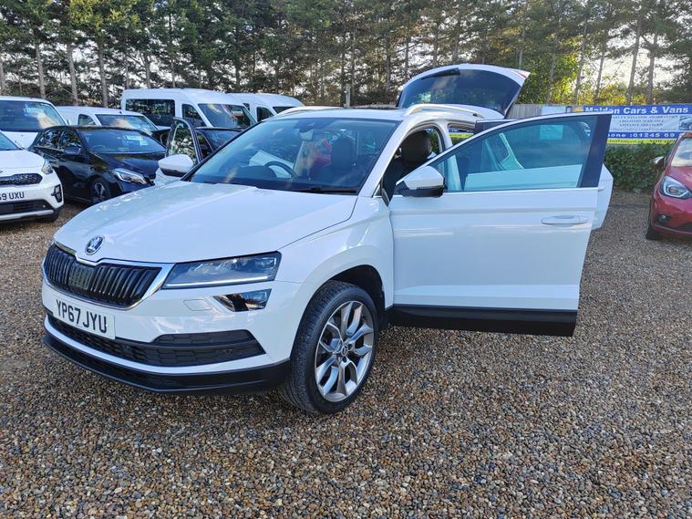 Boasting exceptionally low mileage for its age, this 2018 Skoda Karoq TDI Edition presents a compelling proposition with only 19475 miles on the clock. This Euro 6 compliant, four wheel drive model is powered by an efficient 2.0 litre diesel engine, offering a blend of performance and economy. Its provenance is further assured with a clear vehicle history check and an MOT valid until November 2026. The last service was completed on 20 January 2026 at 19475 miles, ensuring it is well maintained. Notable features include an electrically operated driver's seat with memory function, a rain and light assistant with an auto dimming rear view mirror, and DAB digital radio with Bluetooth connectivity. For added safety and convenience, it is equipped with Lane Assist and Blind Spot Detection, alongside a fixed panoramic sunroof.This Skoda Karoq stands out with several key advantages. Its 0-60mph acceleration in just 8.5 seconds demonstrates its responsive performance, while its low CO2 emissions highlight its environmental consideration. The large boot space offers practicality for everyday needs and longer journeys, and its low insurance group rating makes it an economical choice to own, 12 MONTHS AA BREAKDOWN COVER, EXPERIAN AUTOCHECK CLEAR, ALL PREV MOTs AVAIL We are located in OAK CORNER, MALDON ROAD, Maldon, Essex post code CM9 6TF Open 7 days a week, All major credit/debit cards accepted for deposits only, Finance available, Please visit our website dealer's website to view our latest stock, Part Exchange Welcome - Test Drives Welcome - We Offer a Transparent, Friendly, 'NO PRESSURE' Service , Read Our Reviews, All our vehicles come with 6 months nationwide parts and labour warranty, MALDON CARS AND VANS LTD are authorised and regulated by the Financial Conduct Authority under FRN Reference number 927720. Finance is Subject to status. MALDON CARS AND VANS LTD is authorised as a CREDIT BROKER and NOT A LENDER. This means we work with a number of carefully selected credit providers who may be able to offer you finance for your purchase.