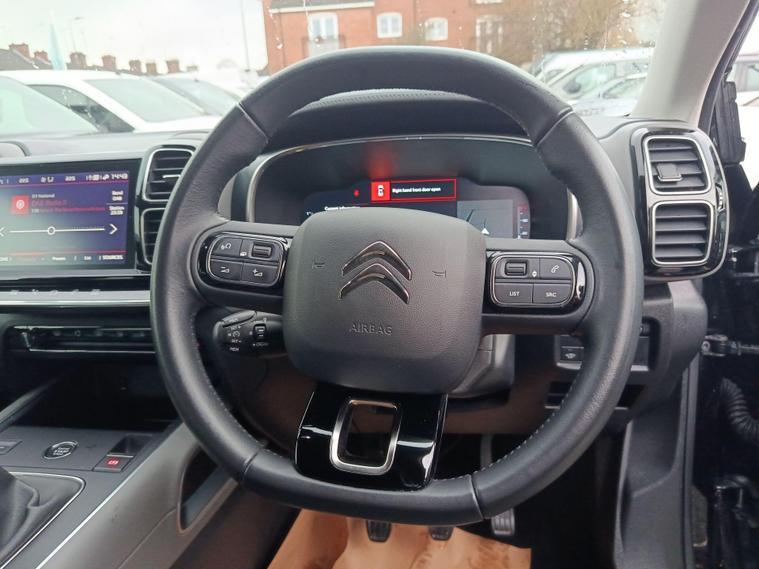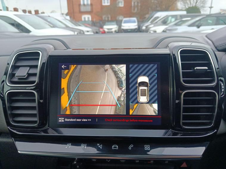 This 2021 Citroen C5 Aircross Shine is a Citroen manufacturer approved vehicle, boasting a single owner and a full service history for your peace of mind. This Euro 6 compliant 1.2 litre petrol model comes with 12 months warranty and a 12 month MOT provided on purchase, ensuring its roadworthiness. A clear vehicle history check further confirms its excellent provenance. Notable features include the Park City Camera Pack with front and rear sensors and a rear camera, an Active Blind Spot Monitoring System, and an Acoustic Laminated Windscreen with rain and brightness sensors, all contributing to a safer and more convenient driving experience.The Citroen C5 Aircross Shine offers several highlights that set it apart. Its impressive fuel economy of 44 mpg means fewer trips to the petrol station, while its low CO2 emissions are better for the environment. You'll also benefit from a low insurance group, making ownership more affordable. Furthermore, the generous boot space provides ample room for all your luggage or shopping needs, demonstrating its practicality compared to similar vehicles..