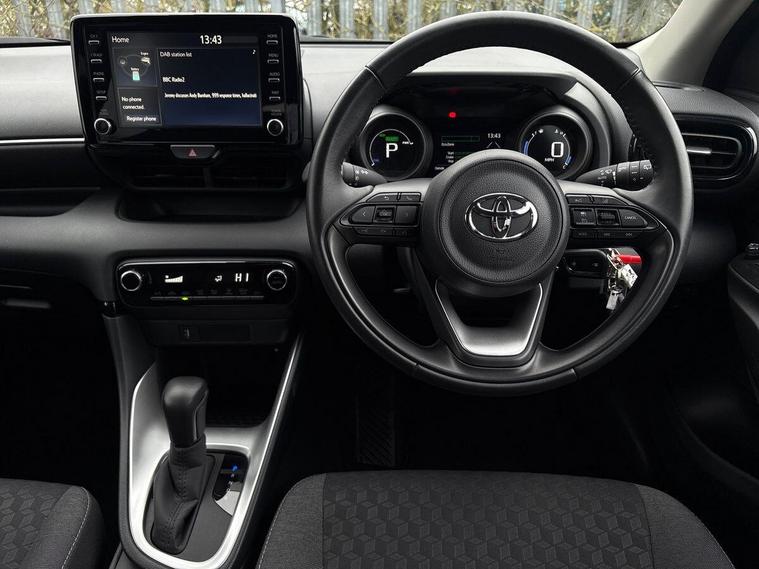 This 2023 Toyota Yaris VVT-h Design is a Toyota manufacturer approved vehicle, boasting a full service history with its last service completed on 2025-05-12 at 19182 miles, and benefits from a 12 month warranty for your peace of mind. This one owner, Euro 6 compliant Yaris features a 1.5L petrol hybrid engine and comes equipped with striking LED headlights, including a front light guide, and automatic headlights for enhanced visibility. Inside, you'll find convenient Bluetooth connectivity and automatic air conditioning, ensuring a comfortable and connected driving experience.The Yaris VVT-h Design stands out with its exceptional fuel economy, achieving an impressive 69 mpg, and its low CO2 emissions, making it a more environmentally conscious choice compared to similar vehicles. With an MOT valid until May 2026, this well maintained Toyota Yaris offers a compelling blend of efficiency, technology, and reliability for any driver..