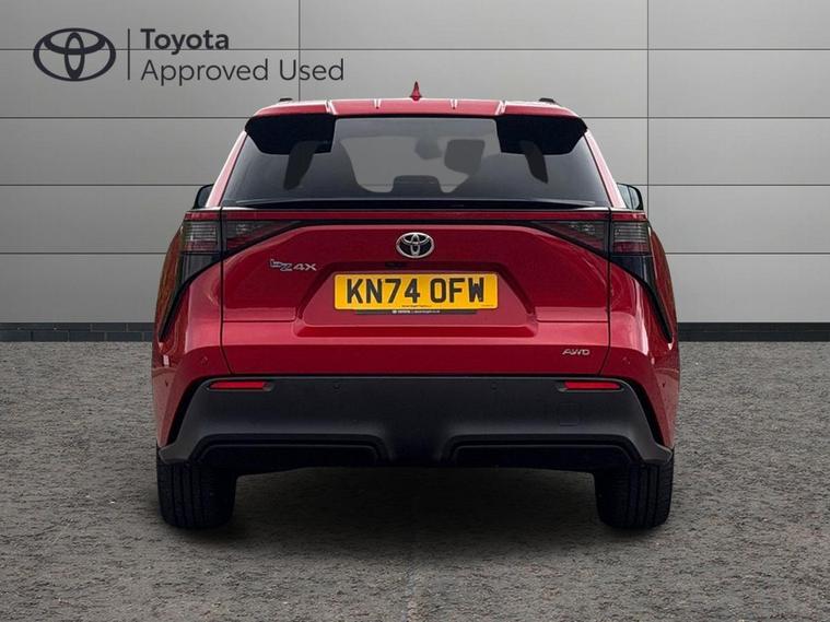 This 2024 Toyota bZ4X Vision boasts exceptionally low mileage for its age, having covered just 3533 miles, and benefits from a full service history with its last service completed on 2025-10-17 at 2229 miles. As a Toyota manufacturer approved electric vehicle, it offers peace of mind with its MOT valid until September 2027 and a remaining warranty of 20 months. This Four Wheel Drive model features a 71 kWh battery, providing a maximum range of 260 miles from new. Charging is convenient, with a full charge at home taking approximately 9 hours and 10 minutes using a 7kW charger, and a rapid charge to 80% achievable in just 34 minutes at a public charging station.The Toyota bZ4X Vision is equipped with notable features that enhance your driving experience. Intelligent Adaptive Cruise Control, with a convenient switch on the steering wheel, helps maintain a set distance from the vehicle ahead. Both the driver and front passenger can enjoy the comfort of heated seats, perfect for cooler days. The 12.3 inch HD Toyota Smart Connect multimedia system offers seamless wireless smartphone integration with Apple CarPlay and Android Auto, alongside Go Navigation. For easier manoeuvring, a reversing camera provides clear visibility of the area behind the vehicle. These features collectively demonstrate the bZ4X Vision's advanced technology and comfort, setting it apart from other vehicles in its class..