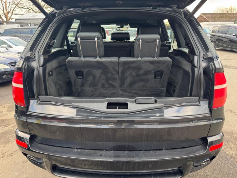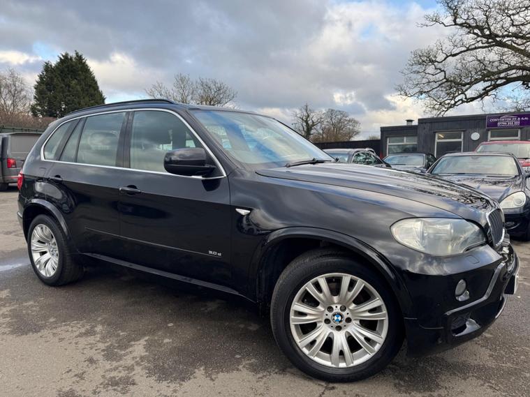 THIS BMW X5 3.0d M Sport SUV 5dr Diesel Auto 4WD Euro 4 (235 ps) 7 SEATER AUTOMATIC 4X4 LOOKS GREAT IN EBONY EBONY BLACK COACHWORK WITH EBONY FULL LEATHER HEATED ELECTRIC SEATS WITH DARK BAMBOO WOOD TRIM TO THE DASH AND DOOR CARDS VERY SMART. A RECENT SERVICE UNDER 2000 MILES AGO WITH A GOOD SERVICE HISTORY. THE 4X4 HAS PAS, STEREO RADIO WITH CD PLAYER, COLOUR SCREEN FACTORY SAT NAV WITH BLUETOOTH TELEPHONE CONNECTION, DUAL ZONE CLIMATE CONTROL AIR-CONDITIONING, REMOTE CONTROL CENTRAL LOCKING SYSTEM, ZENON HEADLIGHTS, FRONT & REAR PARKING SENSORS 19 INCH ALLOY WHEELS WITH GOOD TYRES. THERE ARE 2 sets REMOTE KEYS ALL THE BOOKS AND MANUALSThis 2008 BMW X5 d M Sport boasts a clear vehicle history, offering peace of mind for its next owner. This capable four wheel drive model is powered by a robust 3.0 litre diesel engine, delivering strong performance with an impressive 0-62mph acceleration time of just 8.1 seconds. Inside, you'll find a well appointed cabin featuring heated front seats for comfort, automatic air conditioning for climate control, and the SatNav Professional system to guide your journeys. Entertainment is catered for with a USB and audio interface, alongside an MP3 compatible 6CD changer conveniently located in the glovebox. The BMW X5 d M Sport stands out with its substantial towing weight of 3500 kg, making it a practical choice for those needing to tow. Furthermore, its generous boot space ensures ample room for luggage or equipment, surpassing many vehicles in its class. This particular model also benefits from a low insurance group, which can help to reduce running costs. These combined highlights demonstrate the X5's superior blend of performance, practicality, and value..