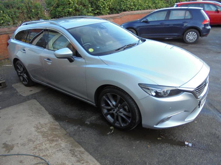 MAZDA 2.2 SKYACTIV-D SPORT NAV TOURER ESTATE CAR EURO 6.THIS IS A ONE OWNER FROM NEW ESTATE CAR IN METALLIC SILVER WITH FULL MAZDA SERVICE HISTORY AND MASSIVE dealer's website WITH SAT NAV, BLUETOOTH CONNECTIVITY, REAR CAMERA, FRONT AND REAR PARKING SENSORS, FULL BLACK LEATHER HEATED SEATS, AIRCON, CRUISE CONTROL, AND 19 INCH ALLOY WHEELS.VERY ECONOMICAL ESTATE CAR £35 A YEAR ROAD TAX AND 60 MPG. MOT UNTIL NOVEMBER 2026 AND FRESH SERVICE.12 MONTHS FREE AA BREAKDOWN COVER AND 24 MONTHS WARRANTY INCLUDED IN PRICE.FINANCE AVAILABLE P/X WELCOME..
