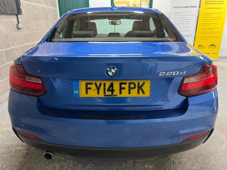 Just serviced with 12 months MOT (no advisories) including new discs and pads all round and a new clutch.Viewing by appointment. Flexible times available early till late 7 days a week, indoor viewing available with full showroom facilities - we are located in Southampton City Centre, just a 2 minute walk from central train station - part exchange welcome. All cars are HPI clear and will come with long MOT, serviced if required and supplied with 3 months warranty, no pressure sales, no admin fees no asking for deposits prior to a test drive just a friendly independent garage selling cars the way it should be done. With an MOT valid until January 2027 and a clear vehicle history check, this 2014 BMW 2 Series 220d M Sport offers excellent peace of mind. This Euro 6 compliant model, with its 2.0L diesel engine, has been well maintained, with its last service completed on 15 January 2026 at 89, 000 miles. It has had only three owners and boasts low mileage for its age. Inside, you'll find a host of desirable features including Enhanced Bluetooth Telephone Preparation with USB Audio Interface, a premium Harman Kardon Loudspeaker System, and single zone automatic air conditioning. Parking is made easier with rear Park Distance Control, and the Bluetooth hands free system ensures you can stay connected safely.This BMW 2 Series 220d M Sport stands out with its impressive fuel economy of 59 mpg, making it an economical choice for your daily driving. Its low CO2 emissions further contribute to its cost effectiveness and environmental consideration. The acceleration is brisk, reaching 0-62mph in just 7.2 seconds, demonstrating a strong performance from its diesel engine. Furthermore, this model falls into a low insurance group, which can help to reduce your overall running costs, making it a compelling option compared to similar vehicles. A 3 month warranty is also included for added reassurance..