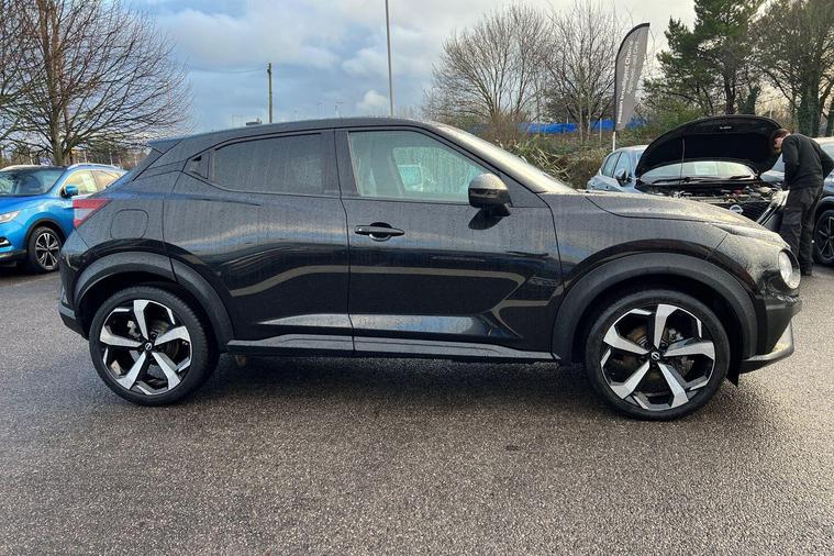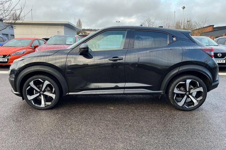 This 2022 Nissan Juke DIG-T Tekna is a Nissan manufacturer approved vehicle, offering peace of mind with its proven history. This stylish Tekna trim Juke is powered by an efficient 1.0 litre petrol engine, meeting Euro 6 emissions standards. It comes equipped with the convenience of Intelligent Key and Start Push Button, featuring Walk Away Lock and Approach Unlock functions for seamless keyless entry. Inside, you'll enjoy full smartphone integration with Apple CarPlay and Google Android Auto, keeping you connected on every journey.The Juke DIG-T Tekna stands out with its impressive fuel economy, achieving a highlight of 48 miles per gallon, which indicates it is more economical than many similar vehicles. Furthermore, its low CO2 emissions highlight also shows it is a more environmentally conscious choice compared to other cars in its class. This combination of efficiency, technology, and manufacturer approval makes this Nissan Juke a compelling option..