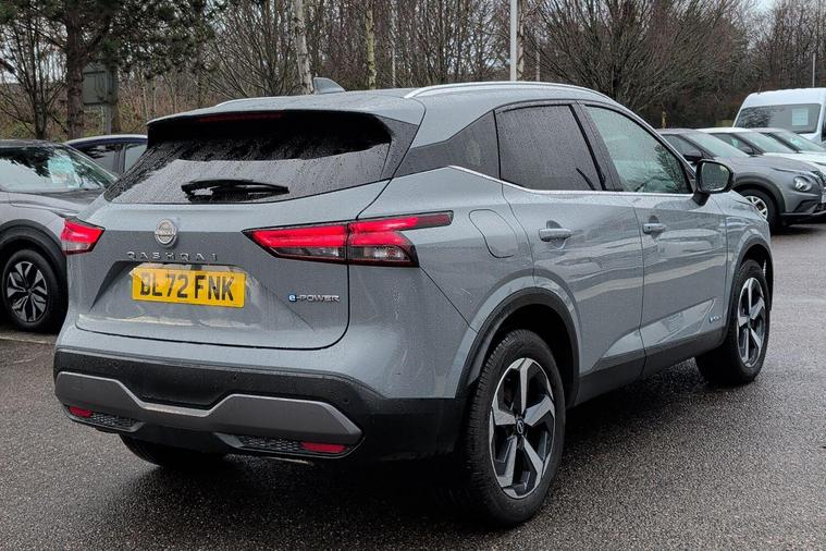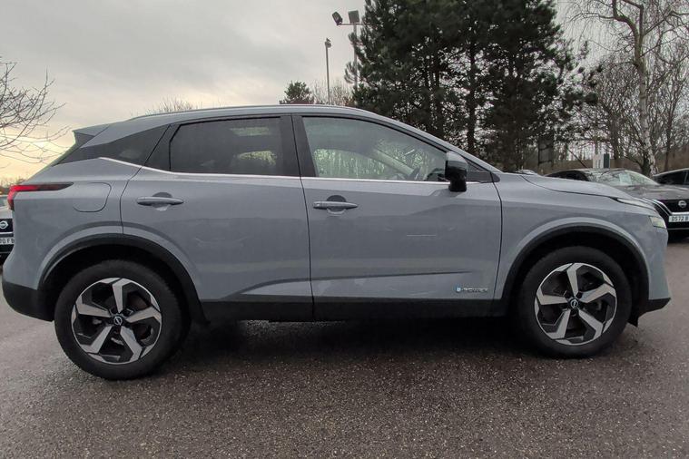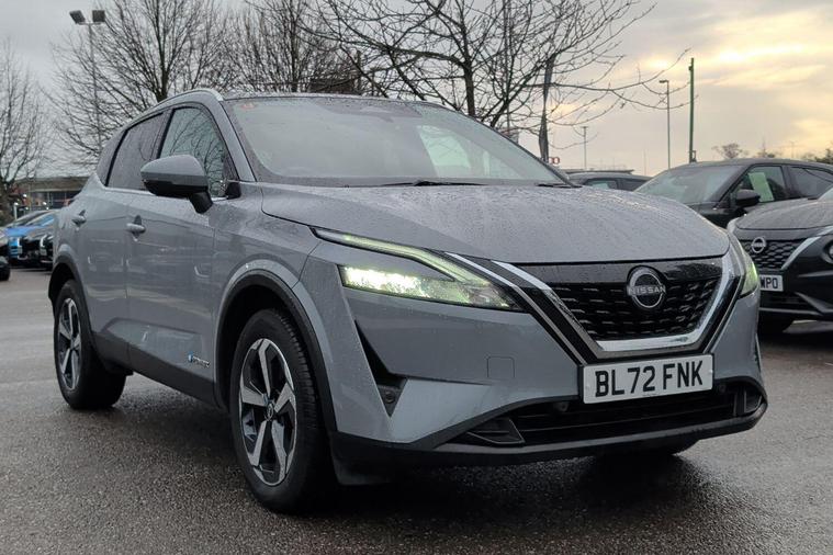 This 2022 Nissan Qashqai h e-POWER N-Connecta is a Nissan manufacturer approved vehicle, meaning it has passed a rigorous inspection and comes with peace of mind. This one owner example boasts a 1.5 litre petrol hybrid engine, meeting Euro 6 emission standards. It comes equipped with a suite of intelligent driver aids, including Intelligent Blind Spot Intervention and Blind Spot Warning, both incorporating BLIS Blind Spot Assistance. For effortless parking, you'll find an Intelligent Around View Monitor with a 360 degree camera, complemented by a Rear View Camera. Connectivity is seamless with Wireless Apple CarPlay.Experience impressive performance with an acceleration of 0 to 62 miles per hour in just 7.9 seconds. This Qashqai also offers excellent fuel economy, achieving a highlight of 54 miles per gallon, and benefits from low CO2 emissions, making it a more economical choice compared to similar vehicles. Furthermore, you'll appreciate the generous boot space, providing ample room for all your needs..