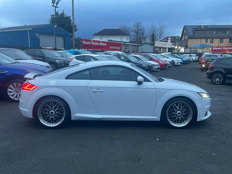 This 2017 Audi TT TDI S line offers exceptional value with its remarkably low mileage of just 57, 500 miles. This particular example boasts a clear vehicle history check and will be supplied with a full 12 months MOT for your peace of mind. Finished in the desirable S line trim, this coupe features a potent yet efficient 2.0 litre diesel engine, meeting Euro 6 emissions standards. Notable features include stylish 19in alloy wheels in a 5-twin-spoke design, privacy glass for added discretion, and the comprehensive Technology Package. All weather LED headlights ensure excellent visibility in all conditions, and the inclusion of Hold Assist adds to the driving convenience.Experience impressive performance with this Audi TT, accelerating from 0 to 60 mph in a swift 6.9 seconds, a figure that highlights its dynamic capability compared to many other vehicles. Furthermore, its fuel economy is a significant advantage, achieving an outstanding 60 miles per gallon, which, combined with its low CO2 emissions, makes it an economical and environmentally conscious choice. This combination of performance, efficiency, and advanced features makes this 2017 Audi TT TDI S line a compelling proposition..