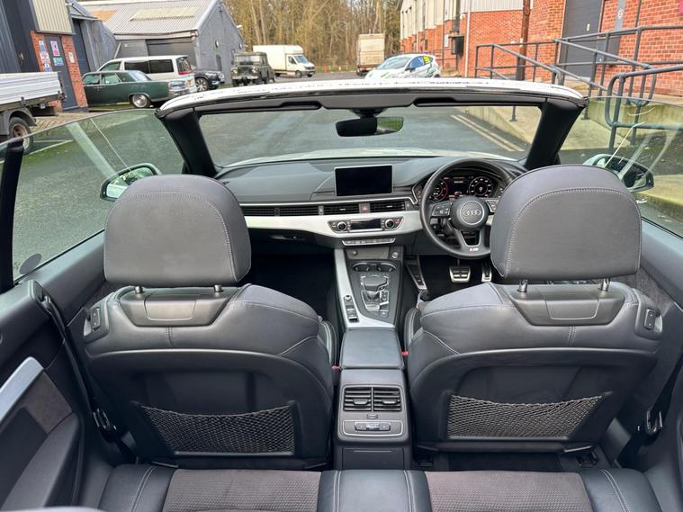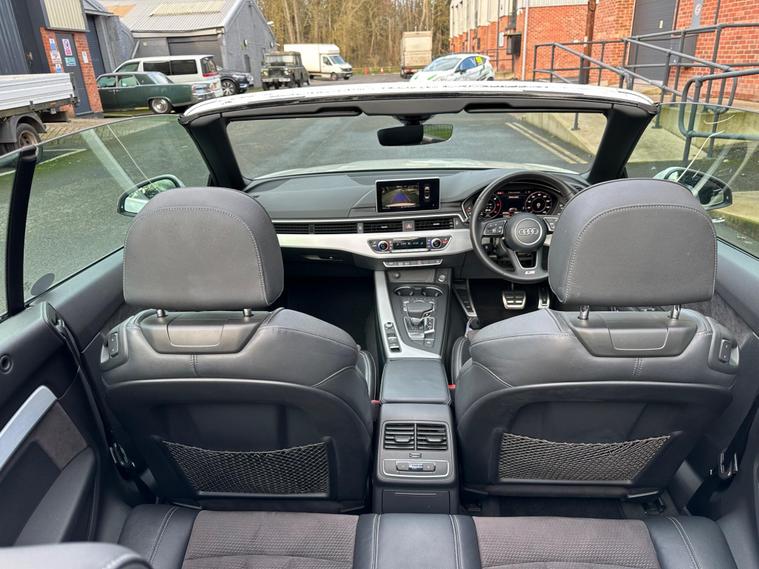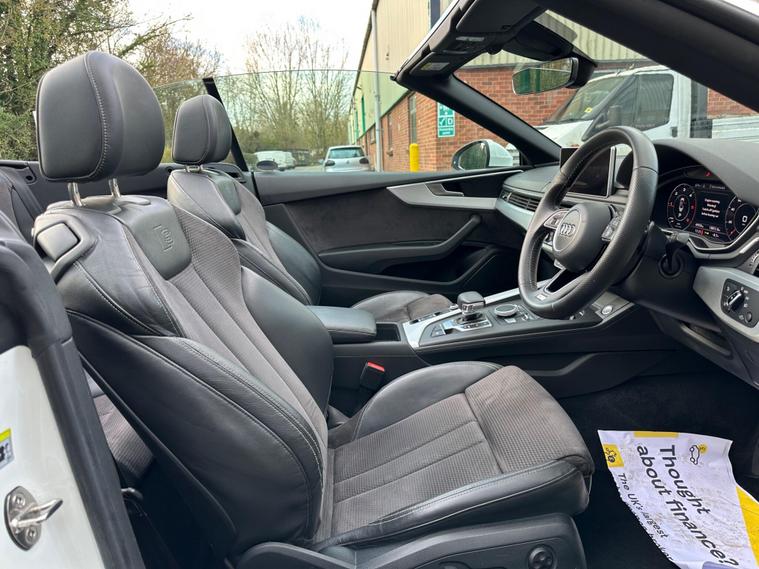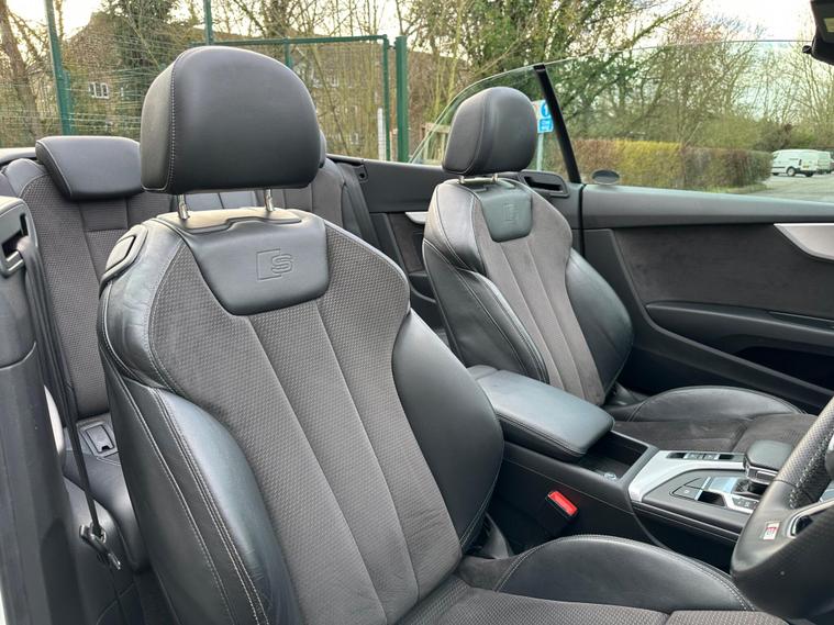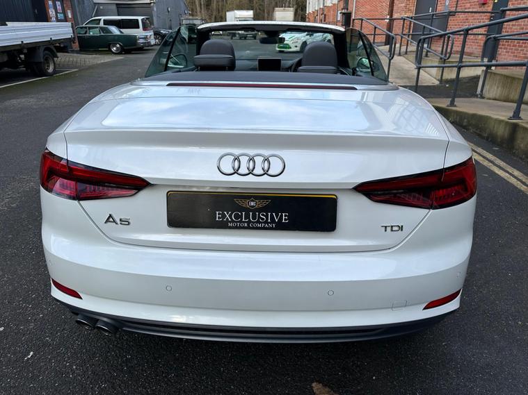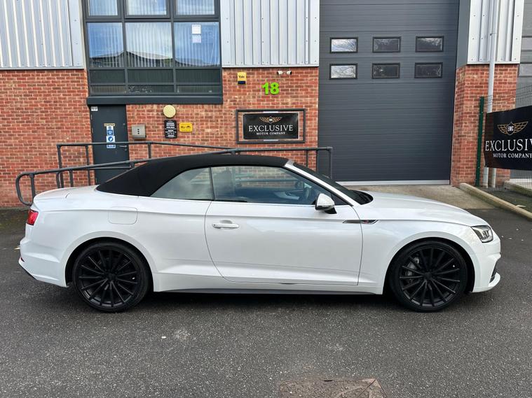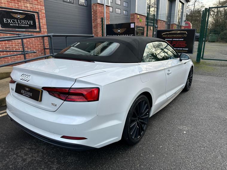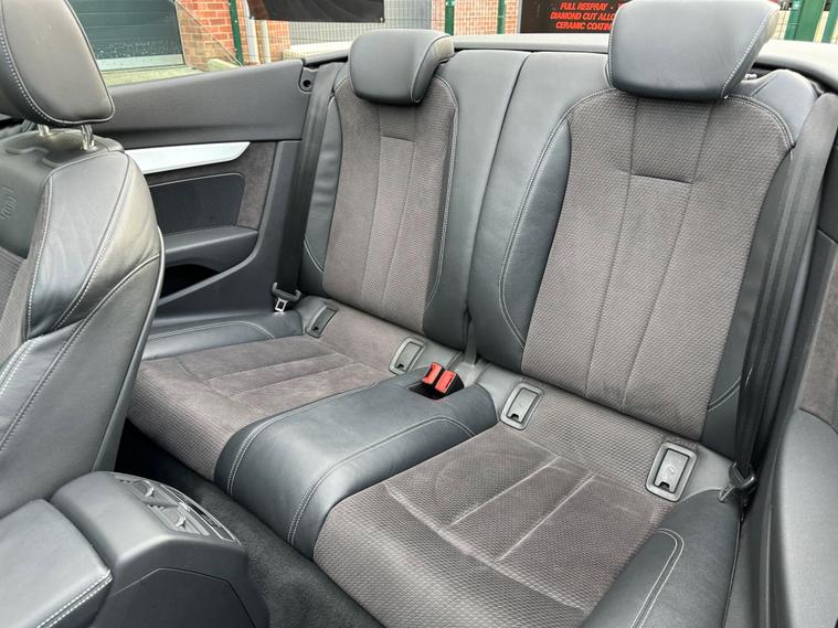 This 2017 Audi A5 Cabriolet TDI S line presents an exceptional opportunity with its remarkably low mileage of just 49, 900 miles. This Euro 6 compliant model boasts a clear vehicle history check and features the desirable S line trim. Driving is made effortless with the Audi Parking System Plus, offering front and rear sensors, while Keyless Go allows for convenient entry and starting. The integrated Bluetooth interface ensures seamless connectivity, and the Light and Rain Sensor automatically manages headlights, which are advanced LED units complemented by dynamic LED rear indicators.Experience impressive performance with a 0-60mph acceleration of just 8.0 seconds from its 2.0 litre diesel engine, all while achieving an outstanding fuel economy of 61 mpg. This A5 Cabriolet also offers generous boot space for your needs and benefits from low CO2 emissions, making it a more economical and environmentally conscious choice compared to similar vehicles..