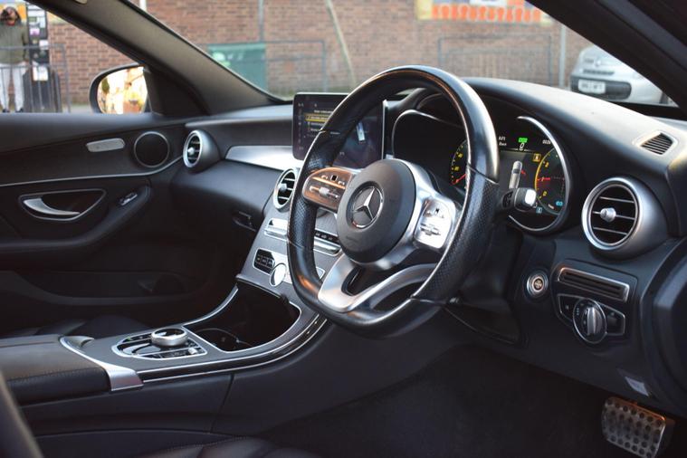 - Steering Wheel - 3-Spoke Multi-Function AMG in Black Nappa Leather with Flattened Bottom Section and Chrome Inserts and Perforated Leather in Grip Area