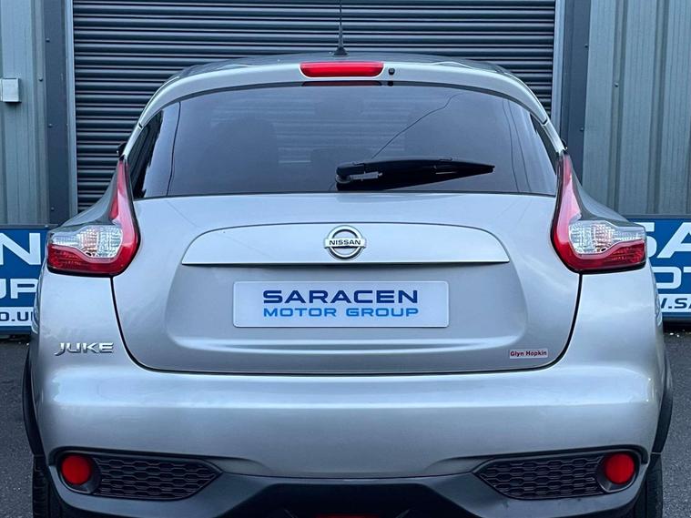 Nissan Juke 1.6 N-Connecta CVT 5dr Euro 6 ULEZ FREE. Finished in Silver with black Alcantara seats and red accents. 17'' alloy wheels, Bluetooth, DAB radio, cruise control, reversing camera, privacy glass, electric heated and folding door mirrors, front and rear electric windows, automatic lights, automatic wipers, LED DRL's, leather wrapped multifunction steering wheel, automatic climate control, black headlining.Here at Saracen Motor Group we have been awarded AA Platinum Dealership Recognition along with being nominated for best customer service by Autotrader for 2021, 2022, 2023, 2024 & 2025. We are a 5-star dealership with over 600 5-star reviews across all internet platforms including Autotrader and have been regarded as one of the best dealerships to buy from in the UK.Our preparation team inspects each vehicle to the highest level possible for it’s age and mileage. You can rest assured your next car has been cared for to the highest standard. Service history, V5 and the HPI certificate will all be present on viewing and collection. At our site based in Battlesbridge, Essex you can enjoy a haggle-free buying experience where you can drive away the same day if prior arranged. Additional fees apply. Please see our website for details..