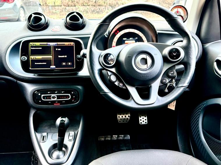 Finished in Jet Black with Black Fabric with White Double-Stitching this 2021 Smart Fortwo Premium electric vehicle boasts exceptionally low mileage for its age, having covered just 7201 miles. Recharging is convenient, with a full charge at home using a 7kW charger taking approximately 3 hours and 46 minutes. This vehicle comes with a 6 month Premium Nationwide Pats & Labour warranty and its MOT is valid until October 2026, ensuring peace of mind.The Smart Fortwo Premium is equipped with a range of notable features designed to enhance your driving experience. These include a rear parking aid with an acoustic warning and a reversing camera, alongside automatic climate control for consistent comfort. The Smart Media System integrates seamlessly with Android Auto and Apple CarPlay, and also offers Bluetooth connectivity. Enjoy the open air with the panoramic roof and sun blind, and experience added comfort with heated seats for both the driver and front passenger. These features collectively highlight the thoughtful specification of this particular Smart Fortwo. Cruise control with limiter is accessed via the 3-Spoke Multi-function Sports Steering Wheel. The car also has Central Locking with Radio Remote Control with Visual Locking-Verification Signal and Immobiliser.See the video in the advert or use this link: https://youtu.be/qXXp4eETud0?si=inZYvd7FUpA3d3F40% Deposit when financing through us.DELIVERY AVAILABLE. The Car Comes With A 6 Month Premium Nationwide Parts And Labour Warranty Finance Available From 10.9 % Apr All Inspections Welcome AA/RAC Px Welcome Viewing By Appointment Only Please Call John On 01992692105 Or 01992692105.