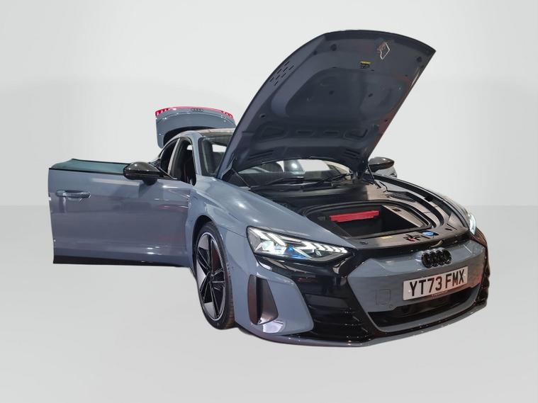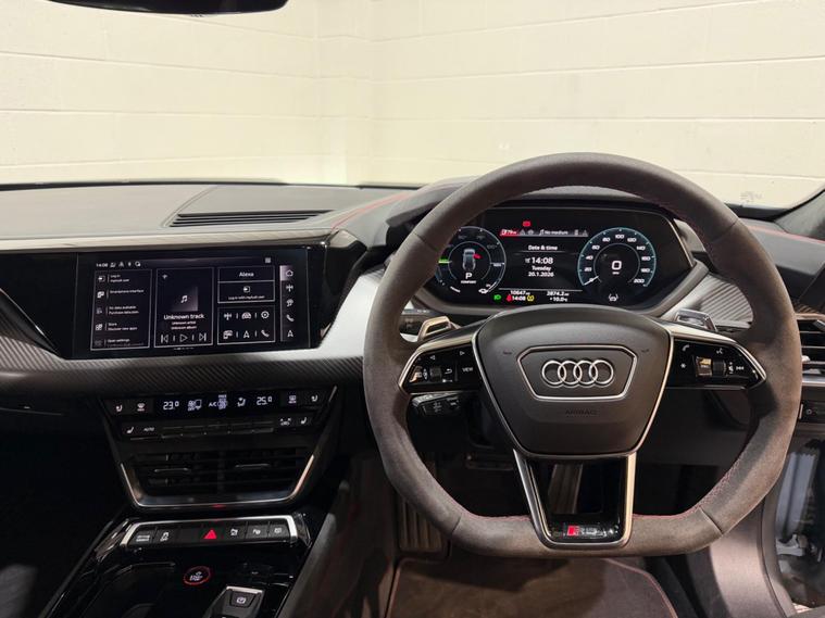 The Audi RS e-tron GT is a striking all-electric performance saloon that blends breathtaking design with advanced technology and everyday usability. Finished in the distinctive Kemora Grey, this four-door grand tourer makes a strong visual statement, with sleek lines, a low, athletic stance and unmistakable RS presence. The quattro all-wheel-drive system ensures confident road holding and composed performance in all driving conditions.Inside, the cabin offers a refined yet sporting atmosphere, showcasing Audi’s renowned build quality and attention to detail. Electric memory seats provide excellent comfort and support, allowing you to find the perfect driving position with ease. Heated and cooled seats enhance comfort throughout the year, whether on cold winter mornings or warm summer journeys.The technology on board is equally impressive. Apple CarPlay allows seamless smartphone integration, keeping navigation, music and communication easily accessible. Parking and low-speed manoeuvres are made simple thanks to the 360° reversing camera, delivering a clear and comprehensive view around the vehicle. Completing the premium feel is the Bang & Olufsen sound system, offering powerful, crystal-clear audio for an immersive in-car entertainment dealer's website performance-focused engineering with luxury, innovation and everyday practicality, this Audi RS e-tron GT represents a compelling choice for those seeking a high-end electric saloon with genuine presence and exceptional comfort..