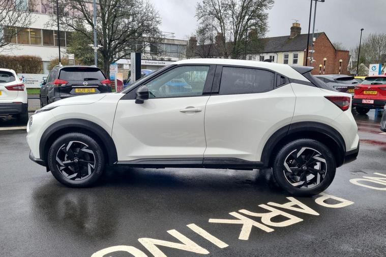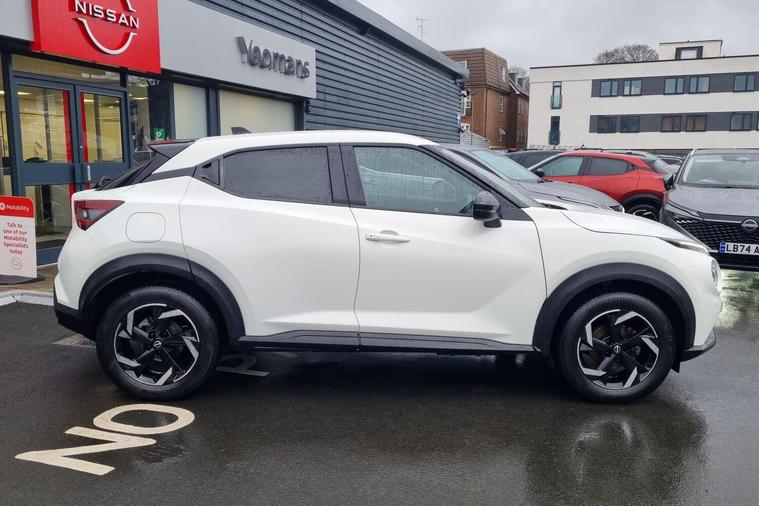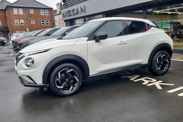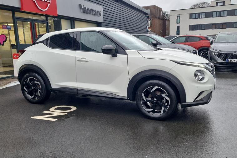 This 2022 Nissan Juke DIG-T N-Connecta boasts exceptionally low mileage for its age, having covered just 14593 miles. This one owner vehicle is presented in the N-Connecta trim and is powered by an efficient 1.0L Euro 6 petrol engine. It comes equipped with modern conveniences such as front and rear parking sensors, a rear parking camera, and automatic air conditioning for a comfortable driving experience. The LED headlights provide excellent visibility, while seamless integration with your smartphone is assured thanks to Android Auto and Apple CarPlay compatibility.The Juke DIG-T N-Connecta offers impressive fuel economy, achieving a notable 49 miles per gallon, which indicates it is more economical than many other vehicles in its class. Furthermore, its low CO2 emissions highlight its environmentally conscious design. This combination of low mileage, single ownership, excellent fuel efficiency, and desirable features makes this 2022 Nissan Juke a compelling choice.? DRIVE AWAY WITH MORE AT NISSAN ALDERSHOT ?-£250 Deposit Finance Allowance (DFA) – We help with your upfront cost!-Up to 2 Years FREE Servicing – Total peace of mind for the road ahead.-Flexible PCP Finance – Low monthly payments tailored to your budget.Ready to take the next step? Call the team at Nissan Aldershot today on 01252270041 to find out more or book your test drive.Terms and conditions apply. Offers available on PCP (Personal Contract Purchase) agreements for selected vehicles only. Finance subject to status. All offer details and full T&Cs can be confirmed via the dealership on 01252270041..