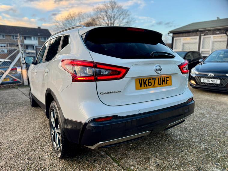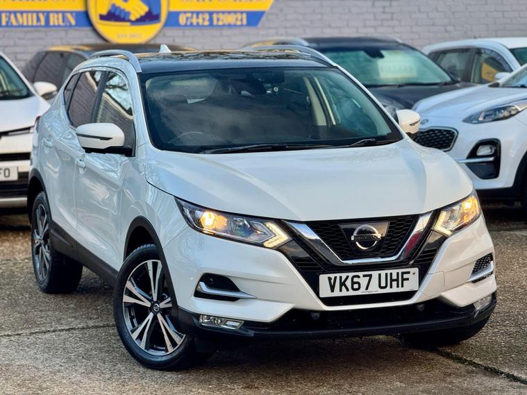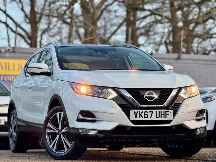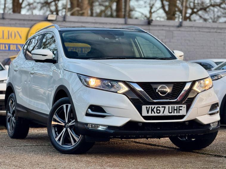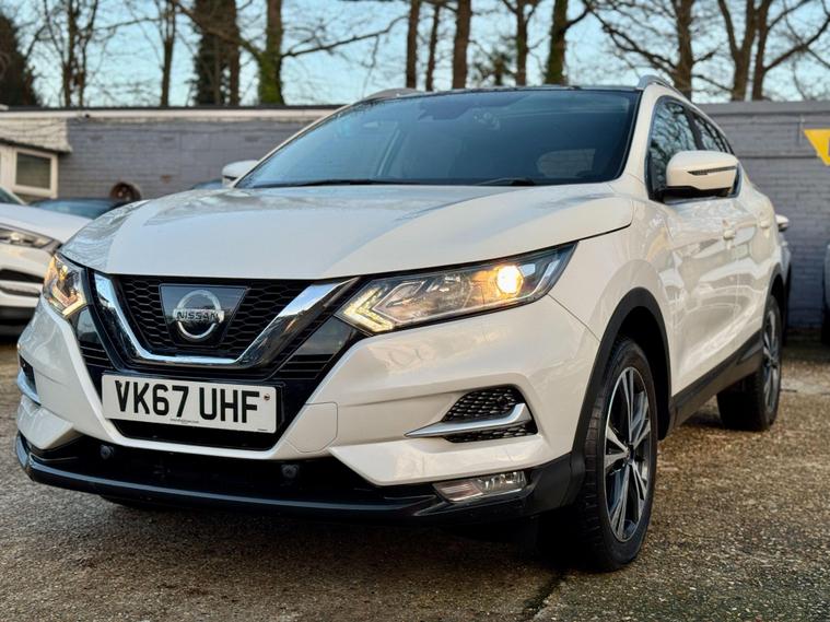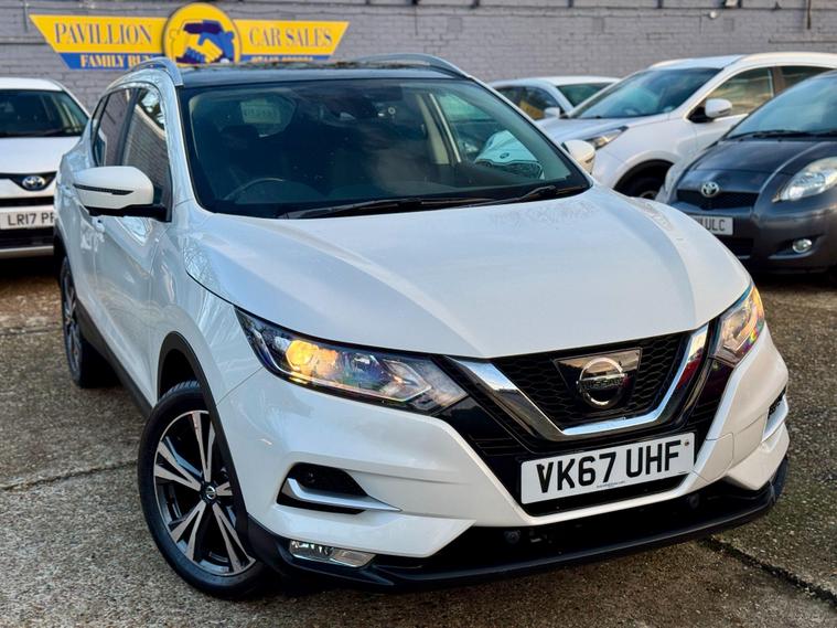 |||| THE USED CAR: ||||Pavillion Car Sales is pleased to offer this Nissan Qashqai 1.5 dCi N-Connecta Euro 6 (s/s) 5dr, a highly sought-after family SUV combining strong efficiency, modern technology, and everyday practicality.Finished in White, this 2017 (67) example has covered 72, 300 miles, is ULEZ compliant, and is powered by Nissan’s proven 1.5 dCi diesel engine, delivering 108bhp with an impressive 74.3mpg, making it an excellent choice for both commuting and longer journeys. Road tax is £195 per year, and the smooth manual gearbox offers a refined and economical driving experience.The N-Connecta specification is particularly well equipped and includes Intelligent Around View Monitor with 360° cameras, front and rear parking sensors, rear view camera, dual zone climate control, cruise control with speed limiter, NissanConnect touchscreen navigation system, Bluetooth connectivity, DAB radio, lane departure warning, traffic sign recognition, intelligent emergency braking, LED daytime running lights, privacy glass, 18in bi-colour alloy wheels, and a panoramic glass roof, which floods the cabin with natural light. The flexible boot space and split-folding rear seats make it ideal for family use.|||| THE HISTORY: ||||This Qashqai has had 3 former keepers and will be fully inspected and prepared to a high standard prior to sale. It comes with a FULL SERVICE HISTORY as follows (8 Total Services) 1st at 8407, 2nd at 18007, 3rd at 24723, 4th 32001, 5th at 40012, 6th at 52282, 7th at 66940, 8th at Current Mileage. It also had a New Battery in 2025. |||| WHAT'S INCLUDED: ||||Peace of Mind from the Pavillion Car Sales FamilySupplied with a LONG MOT till 29/09/2026 (Advisory Free), 12 months complimentary AA breakdown cover, a 3-month warranty (upgradeable to a nationwide 36-month AA warranty), and 5-day Drive Away Insurance where applicable.2 keys supplied. Assistance with road tax available.PAVILION CAR SALES – CRAWLEY.