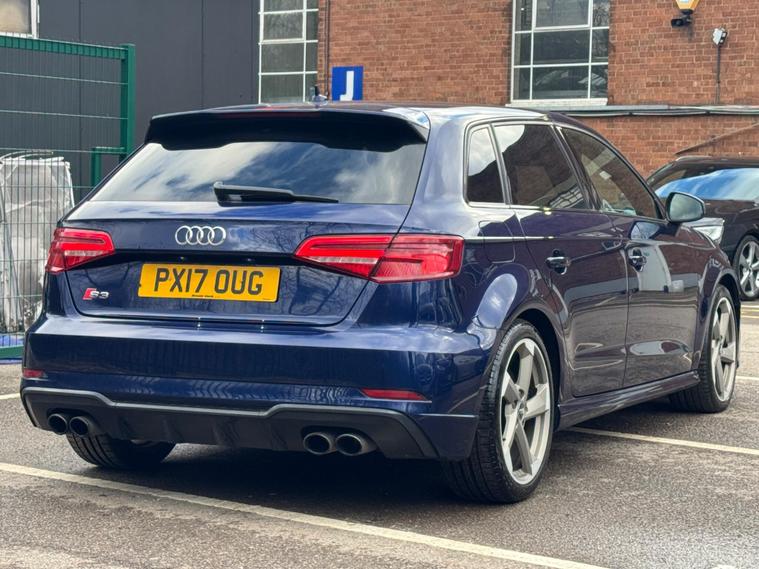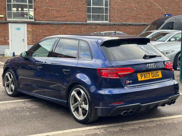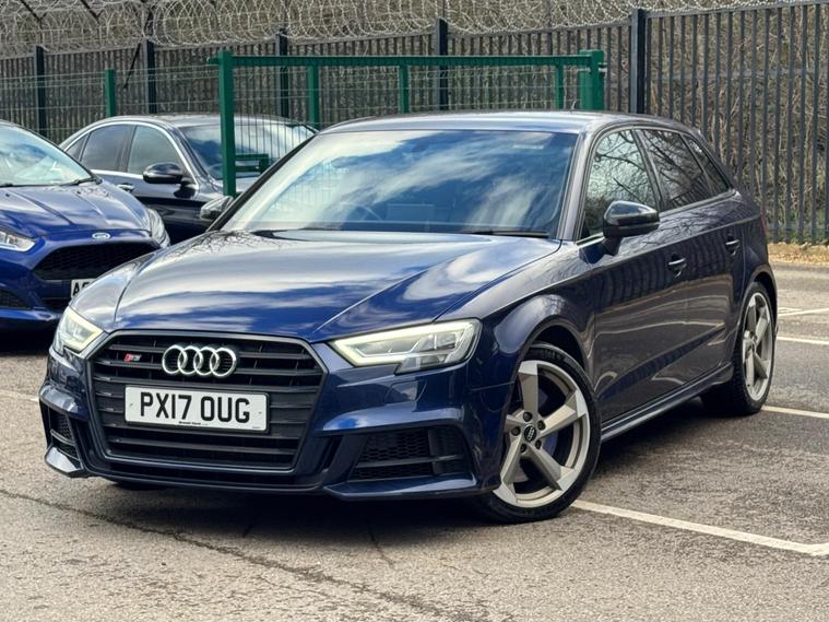 Now Available – 2017 Audi S3 2.0 TFSI Black Edition Sportback S Tronic quattro Euro 6 (s/s) 5drThis 2017 Audi S3 Black Edition Sportback delivers the perfect blend of performance, practicality, and premium styling. Powered by the 2.0L TFSI turbocharged petrol engine producing 300PS and paired with the S Tronic automatic gearbox and quattro all-wheel drive, it offers thrilling performance with outstanding grip in all conditions. Finished in blue, this example has covered 90, 000 miles, has had 3 owners, and is fully ULEZ compliant.Registration: PX17OUGYear: 2017 (17)Mileage: 90, 000 milesFuel Type: PetrolTransmission: Automatic (S Tronic)Drivetrain: quattro (All-Wheel Drive)Colour: BlueOwners: 3 OwnersULEZ Compliant⸻Key Features: • 2.0 TFSI Turbocharged Petrol Engine (300PS) – Rapid acceleration and smooth power delivery • S Tronic Dual-Clutch Automatic Gearbox – Fast, seamless gear changes • quattro All-Wheel Drive – Superb handling and traction in all conditions • Euro 6 Compliant – Fully ULEZ-friendly • Black Edition Styling Pack – Gloss black exterior accents and premium detailing • S Sport Leather Seats – Supportive and luxurious interior • Heated Front Seats – Added comfort in colder months • Audi MMI Navigation Plus – Integrated sat nav and infotainment system • Virtual Cockpit (if equipped) – Digital driver display • Bang & Olufsen Sound System (if equipped) – Premium audio experience • Apple CarPlay & Bluetooth Connectivity – Seamless smartphone integration • Front & Rear Parking Sensors – Hassle-free manoeuvring • Dual-Zone Climate Control – Personalised comfort for all passengers • LED Headlights & DRLs – Modern and efficient lighting • 19” Black Alloy Wheels – Aggressive and sporty stance • Drive Select Modes – Tailor the driving experience to your preferenceThe Audi S3 Black Edition Sportback is the ultimate all-round performance hatchback — offering everyday usability with genuine sports car performance. With ULEZ compliance, striking looks, and quattro confidence, this is a fantastic example ready to drive away..