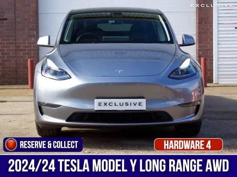 VAT QUALIFYING - £27, 458.33 + £5, 491.67 VAT ---|--- We are delighted to present this, 1 owner, , Tesla Model Y Long Range AWD finished in the metallic Quicksilver paintwork which is the most expensive paint option of £2, 600 ---|--- With a list price of circa £54, 500, there is significant savings from list price! ---|--- The 2024 Tesla Model Y also has additional benefits such as the Hardware 4 which includes improvements on the cameras and autopilot functionality.--|--Say hello to the Tesla Model Y, which should appeal to buyers looking for extra SUV practicality, with the capability of achieving c.331 miles WLTP driving range on a full charge and ability to achieve a staggering 0-60mph in just 4.8 seconds. -|-TESLA WARRANTY UNTIL 08/2028 AND BATTERY WARRANTY UNTIL 08/2032--|--The Model Y has an extensive specification including: autopilot, satellite navigation , surround cameras, panoramic roof, electric tailgate, heated front and rear seats, premium connectivity, premium black leather, premium audio system, supercharger enable, and more.-|- Inside, the Model Y has the same minimalist interior, focused around a high-res 15-inch touchscreen in the middle of the dashboard. A taller roof means there's more space and headroom inside the Model Y, while its hatchback boot is much more useful for loading luggage or sports equipment. ---|---With a practical and reliable range, fast charging capability, plenty of space and user-friendly onboard technology, the Model Y will appeal to buyers who need to take care of the family or work basics, but who also want the curb appeal and badge kudos that Tesla provides. We think that owning this car is akin to owning an Apple product, simple yet brilliant in both form and function and seldom out of date thanks to its over the air updates. Yep. Instead of having to go to a dealer or service centre to get your car updated ---|--- *Other features and upgrades can be added from Tesla such asFull self driving Enhanced Autopilot 20'' induction alloysTow bar*.