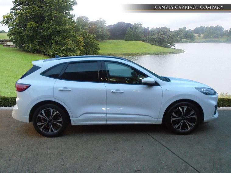 This 2022 Ford Kuga ST-Line X Edition is a superb example, having had only one owner since new. Powered by an efficient 1.5L Petrol engine and meeting Euro 6 emissions standards, this model offers a refined driving experience. It comes equipped with a host of desirable features, including a rear view camera with parking assistance, automatic headlights with a follow me home function, and full LED headlamps for excellent visibility.Further enhancing its appeal, this Kuga boasts a power opening panoramic roof, allowing you to enjoy the open sky, and a heated steering wheel for added comfort during colder journeys. The ST-Line X Edition trim level signifies a higher specification, indicating that this vehicle offers more than many similar models. Its low insurance group rating is also a notable advantage, making it an economical choice for many drivers..