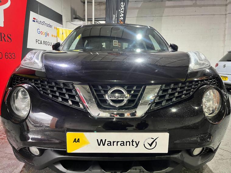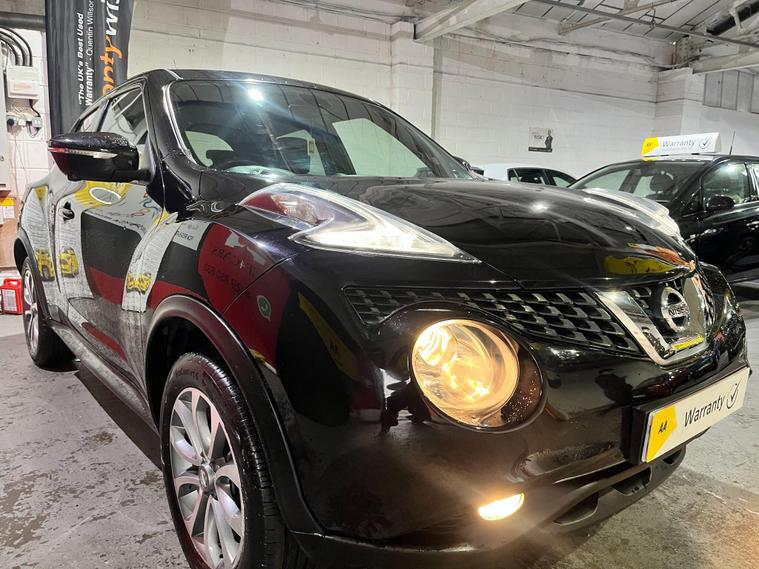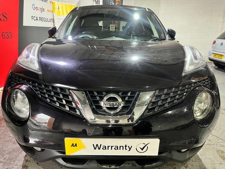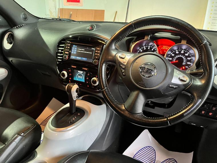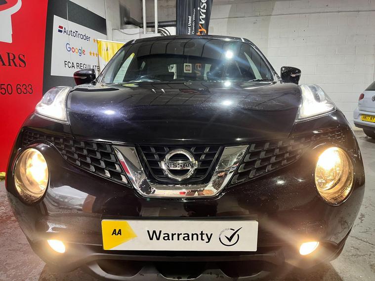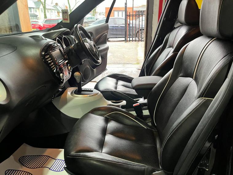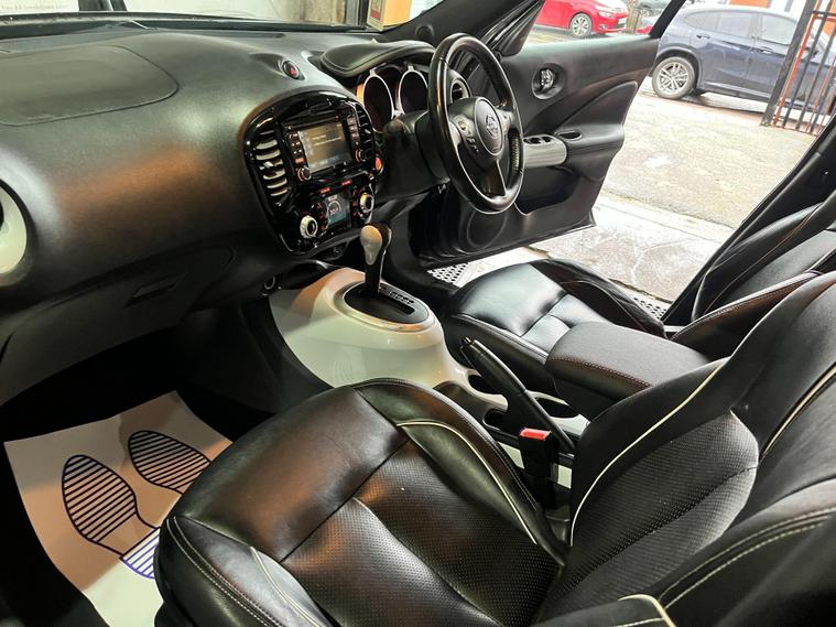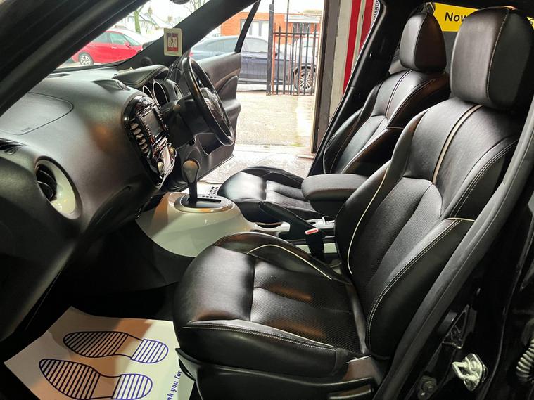 HPI CLEAR++3 MONTHS NATIONWIDE PREMIUM WARRANTY AND 12 MONTHS AA BREAKDOWN COVER++A NICE EXAMPLE OF THE DESIRABLE NISSAN JUKE AUTOMATIC FINISHED IN PANTHER BLACK WITH SENSIBLE MILES BACKED BY A UPTO DATE SERVICE RECORD++AVAILABLE TO RESERVE NOW IN OUR NEW YEAR SALE++COMES COMPLETE WITH A NEW SERVICE, FULL MOT AND HEALTH CHECK INCLUDED++EXCELLENT SPEC WITH PREMIUM BLACK LEATHER INTERIOR, HDD SAT NAVIGATION, TOUCHSCREEN MEDIA PACKAGE, 360 CAMERA, HEATED SEATS, DAB RADIO, REVERSE CAMERA, CLIMATE CONTROL, PRIVACY GLASS, BLUETOOTH PREP, ON BOARD COMPUTER AND MUCH MORE++LOW EMISSION ZONE COMPLIANT++FROM OUR ASSURED RANGE FOR YOUR PEACE OF MIND ESTABLISHED DEALER FOR OVER 10 YEARS WORKING ALONGSIDE AA FOR MANY YEARS WITH HONEST CARE AND TRUST PROVIDED TO ALL OUR CLIENTS++PART EXCHANGE WELCOME FINANCE OPTIONS AVAILABLE ANY DEBIT CARD PAYMENTS ACCEPTED++EXTENDED WARRANTY PACKAGES AND DRIVE AWAY INSURANCE AVAILABLE++FCA REGISTERED AND REGULATED++PLEASE CONTACT OUR FRIENDLY TEAM FOR ANY INFO AND OPTIONS TO PURCHASE++HIGHLY RATED ON AUTO TRADER++VISIT US ON dealer's website FOR OTHER SIMILAR CARS AVAILABLE NOW.
