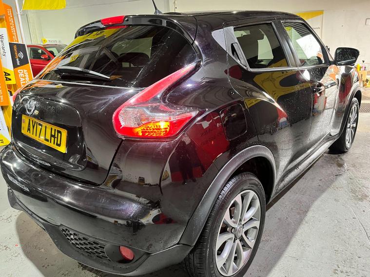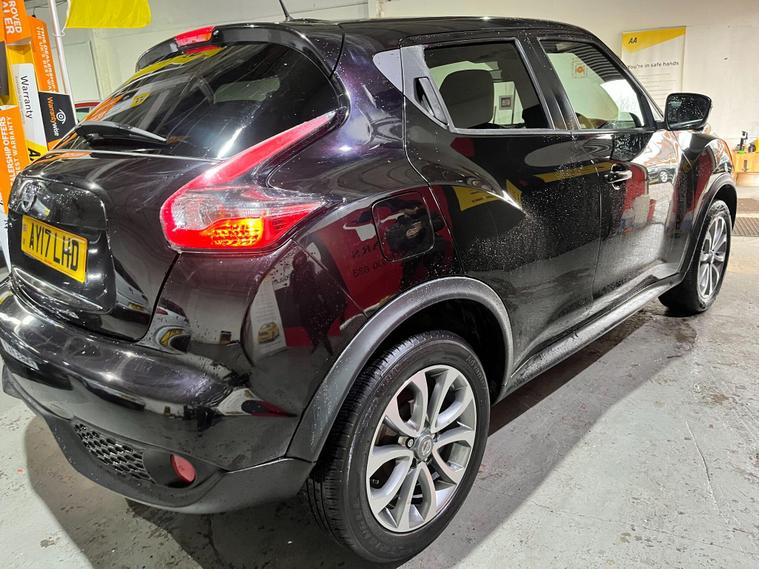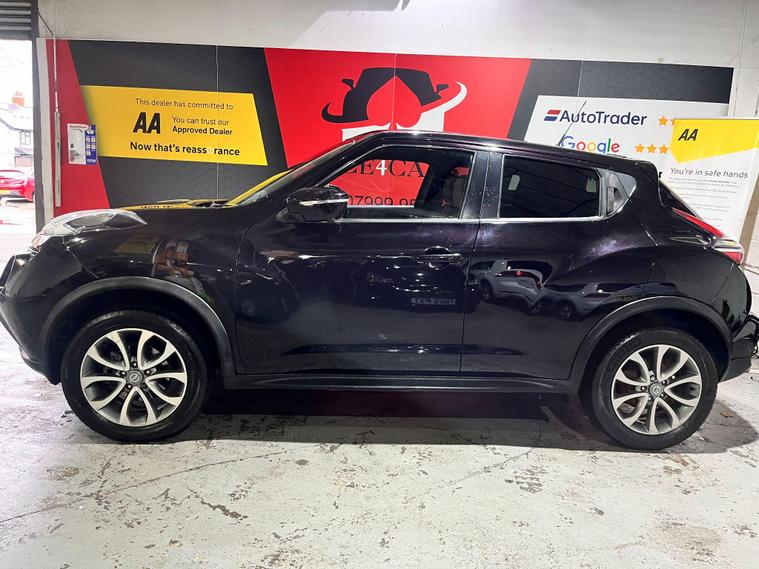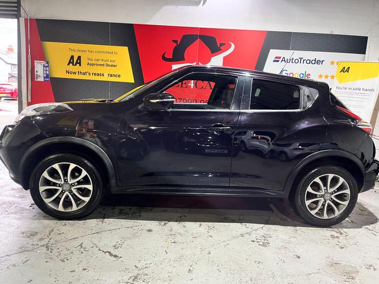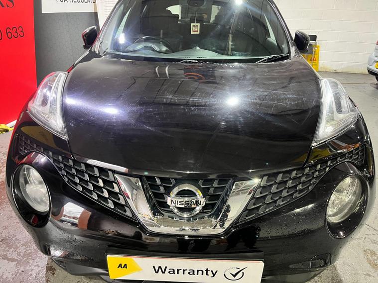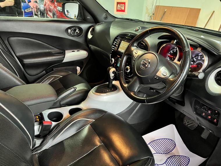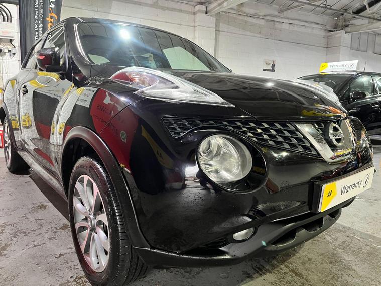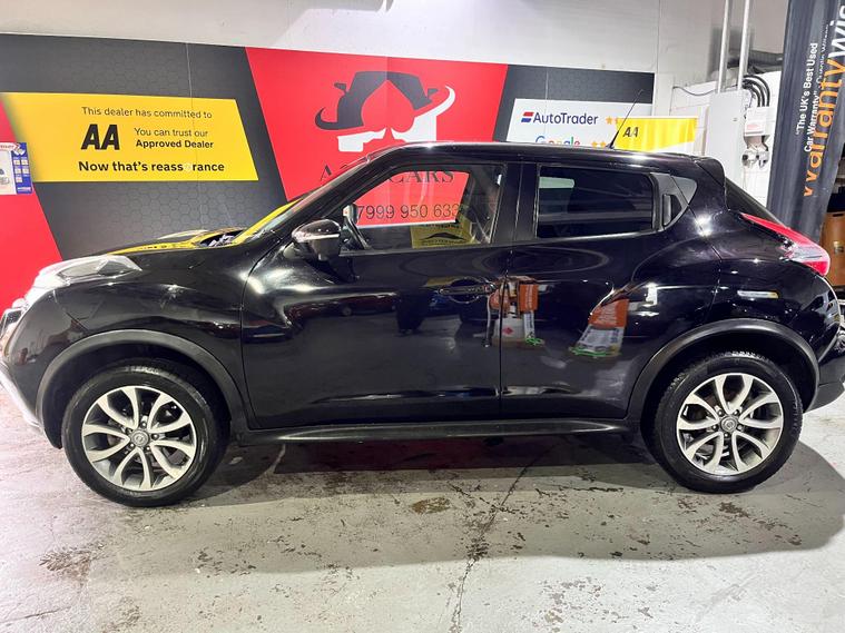 HPI CLEAR++3 MONTHS NATIONWIDE PREMIUM WARRANTY AND 12 MONTHS AA BREAKDOWN COVER++A NICE EXAMPLE OF THE DESIRABLE NISSAN JUKE AUTOMATIC FINISHED IN PANTHER BLACK WITH SENSIBLE MILES BACKED BY A UPTO DATE SERVICE RECORD++AVAILABLE TO RESERVE NOW IN OUR NEW YEAR SALE++COMES COMPLETE WITH A NEW SERVICE, FULL MOT AND HEALTH CHECK INCLUDED++EXCELLENT SPEC WITH PREMIUM BLACK LEATHER INTERIOR, HDD SAT NAVIGATION, TOUCHSCREEN MEDIA PACKAGE, 360 CAMERA, HEATED SEATS, DAB RADIO, REVERSE CAMERA, CLIMATE CONTROL, PRIVACY GLASS, BLUETOOTH PREP, ON BOARD COMPUTER AND MUCH MORE++LOW EMISSION ZONE COMPLIANT++FROM OUR ASSURED RANGE FOR YOUR PEACE OF MIND ESTABLISHED DEALER FOR OVER 10 YEARS WORKING ALONGSIDE AA FOR MANY YEARS WITH HONEST CARE AND TRUST PROVIDED TO ALL OUR CLIENTS++PART EXCHANGE WELCOME FINANCE OPTIONS AVAILABLE ANY DEBIT CARD PAYMENTS ACCEPTED++EXTENDED WARRANTY PACKAGES AND DRIVE AWAY INSURANCE AVAILABLE++FCA REGISTERED AND REGULATED++PLEASE CONTACT OUR FRIENDLY TEAM FOR ANY INFO AND OPTIONS TO PURCHASE++HIGHLY RATED ON AUTO TRADER++VISIT US ON dealer's website FOR OTHER SIMILAR CARS AVAILABLE NOW.
