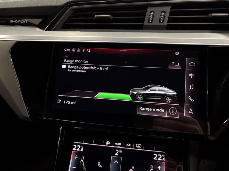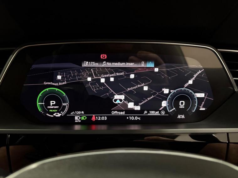 Floret silver wit black leather trim, great spec with the sought after comfort and sound packages with speaker upgrade and camera aid, 55 QUATTRO Model, Audi e-tron S line offers an impressive blend of electric performance and premium features, an electric vehicle with Four Wheel Drive, it delivers a smooth and responsive driving experience. The substantial 95 kWh battery provides a maximum range of 257 miles when new, and can be fully charged at home using a 7kW charger in approximately 14 hours. For quicker top ups, public charging can replenish the battery from empty to 80% in as little as 40 minutes. Inside, you'll find a host of desirable features including 2 Zone Automatic Air Conditioning, the Audi Phone Box with Wireless Charging, Comfort is further elevated by electrically adjustable front seats with a memory function for the driver and heated front seats. Usual specification includes app connect, navigation, dab radio, bluetooth, cruise control and keyless go. PLEASE CALL 01522972873 FOR FURTHER INFORMATION..
