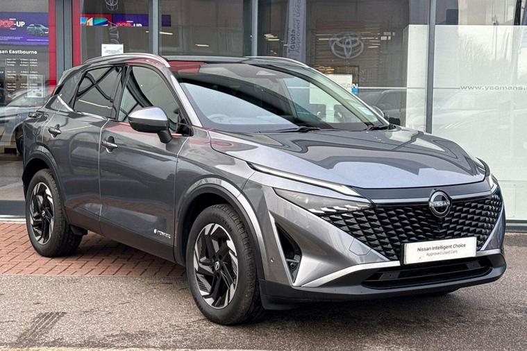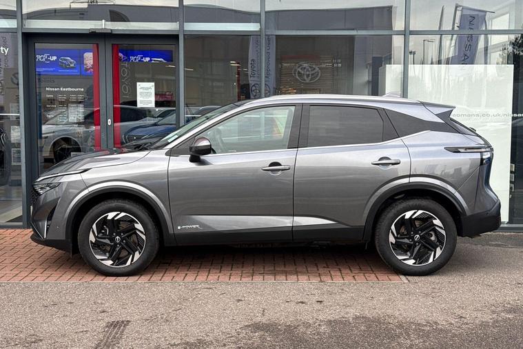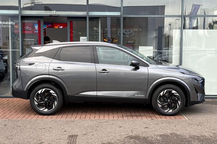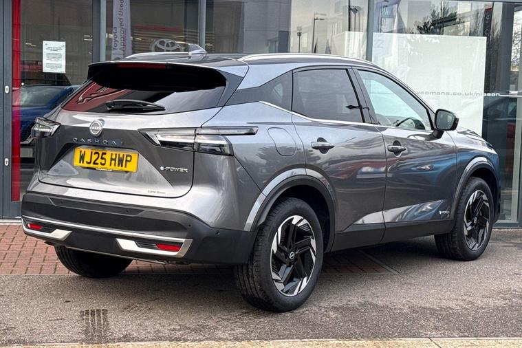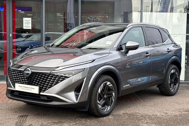 Boasting exceptionally low mileage for its age, this 2025 Nissan Qashqai h e-POWER N-Connecta represents a superb example of this popular model. With only one owner from new and Nissan manufacturer approval, you can be assured of its quality and care. This Euro 6 compliant 1.5 litre petrol hybrid engine offers an efficient and responsive driving experience, complemented by an MOT valid until March 2028. The N-Connecta trim level comes equipped with desirable features including a Glass Roof Pack with a fixed panoramic sunroof, Blind Spot Warning with Intelligent Blind Spot Intervention for enhanced safety, and a convenient Wireless Charging Pad for your mobile devices.Experience the benefits of this Qashqai's advanced hybrid technology, which delivers an impressive fuel economy of 54 mpg, making it an economical choice for your journeys. Its low CO2 emissions further contribute to its environmental credentials. You'll also appreciate the generous boot space, perfect for accommodating shopping or luggage. The vehicle's performance is equally noteworthy, with a swift 0-62mph acceleration time of just 7.9 seconds, demonstrating that efficiency does not compromise on driving enjoyment. These highlights collectively position this Nissan Qashqai as a superior option within its class..