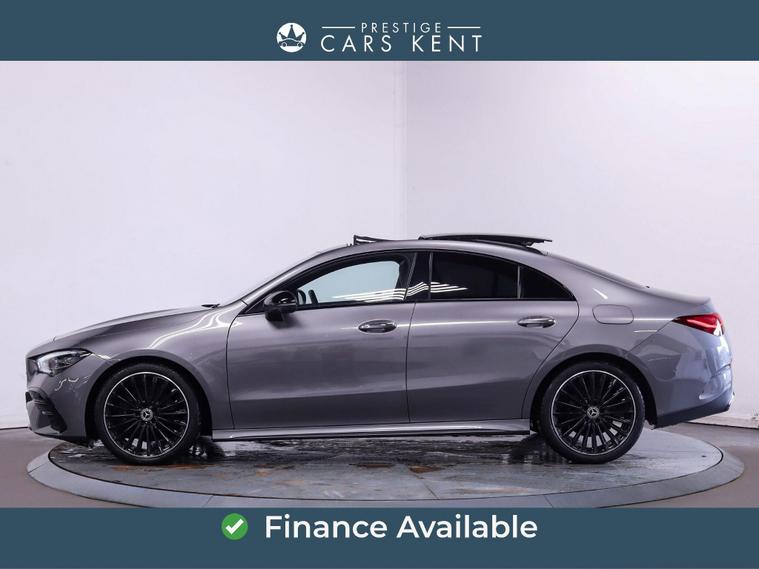 ⭐ Mercedes-Benz CLA 1.3 CLA200h MHEV AMG Line (Premium Plus) Coupe ⭐The Mercedes-Benz CLA200h AMG Line Premium Plus delivers striking coupe styling combined with mild-hybrid efficiency and cutting-edge luxury. With its sleek silhouette, sporty AMG enhancements, and an interior packed with advanced technology, this CLA offers an engaging yet refined driving experience. Designed to stand out, it perfectly balances performance, comfort, and innovation for drivers who expect more from every journey.Some features we love:? 19in AMG Multi-Spoke Alloy Wheels – Bold black alloys with high-sheen rim flanges enhance sporty road presence.? Active Lane Keeping & Blind Spot Assist – Intelligent safety systems supporting confident, stress-free driving.? Cruise Control with Limiter – Smooth, relaxed motorway driving with added speed management control.? GUARD 360 Vehicle Protection – Advanced theft protection and vehicle monitoring for complete peace of mind.? Hard-Disk Navigation & Live Traffic Updates – Accurate routing with real-time traffic and map updates.❄️ Heated Front Seats – Enhanced comfort on colder days at the touch of a button.? 64-Colour Ambient Lighting – Customisable interior lighting to match every mood and journey.? Keyless Go Comfort Package – Effortless access and start for everyday convenience.? Night Package – Black exterior accents for a bold, premium finish.? Panoramic Roof – Floods the cabin with natural light, enhancing space and ambience.? Parking Package with 360° Camera – Confident parking with full surround-view visibility.? Smartphone Integration & Wireless Charging – Seamless Apple CarPlay, Android Auto, and cable-free charging.☎️ 01689242905? Submit an enquiry if you’d prefer to discuss over emailAt Prestige Cars Kent, every car comes with a 90-day guarantee, nationwide delivery, and a 175-point quality check. ⭐ Admin fee applies. Please confirm all specifications, as they are autogenerated ⭐.