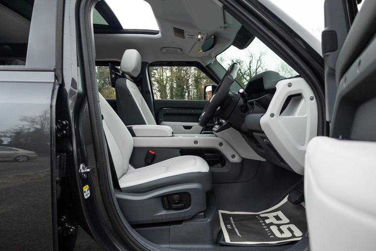 THIS 2024 LAND ROVER DEFENDER 110 D250 X-DYNAMIC SE IS A SUPERB EXAMPLE, HAVING HAD ONLY ONE OWNER SINCE NEW. THIS FOUR WHEEL DRIVE MODEL BOASTS A POWERFUL 3.0 LITRE DIESEL ENGINE AND IS PRESENTED IN THE DESIRABLE X-DYNAMIC SE TRIM. WITH SEATING FOR SEVEN AND A EURO 6 EMISSION CLASS, IT COMBINES PRACTICALITY WITH MODERN STANDARDS. NOTABLE FEATURES INCLUDE CABIN PRE CONDITIONING, AN ADVANCED OFF ROAD CAPABILITY PACK, AND AN OFF ROAD PACK, ALL COMPLEMENTED BY STRIKING 22 INCH GLOSS BLACK ALLOY WHEELS, REAR DVD, CARBON STEERING WHEEL, INDIVIDUAL INTERIOR.THE DEFENDER 110 OFFERS IMPRESSIVE PERFORMANCE, ACCELERATING FROM 0 TO 60MPH IN JUST 7.9 SECONDS, DEMONSTRATING ITS CAPABILITY. ITS THREE ZONE CLIMATE CONTROL WITH REAR COOLING ASSIST ENSURES COMFORT FOR ALL OCCUPANTS, WHILE THE GENEROUS BOOT SPACE PROVIDES AMPLE ROOM FOR LUGGAGE OR EQUIPMENT. THE VEHICLE'S LOW INSURANCE GROUP RATING FURTHER ENHANCES ITS APPEAL, INDICATING THAT RUNNING COSTS ARE MORE FAVOURABLE COMPARED TO SIMILAR VEHICLES. WITH A SUBSTANTIAL TOWING WEIGHT OF 3500 KG, THIS DEFENDER IS EXCEPTIONALLY WELL EQUIPPED FOR A VARIETY OF ADVENTURES AND TASKS. LAND ROVER WARRANTY TILL 2027..