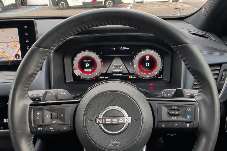 This 2022 Nissan Qashqai DIG-T Tekna+ boasts exceptionally low mileage for its year, having covered just 9975 miles. As a Nissan manufacturer approved vehicle, it offers peace of mind, featuring a 1.3L Petrol Hybrid engine that meets Euro 6 emission standards. The Tekna+ trim level ensures a premium experience, enhanced by notable features such as wireless Apple CarPlay, Intelligent Blind Spot Intervention, front and rear parking sensors, a rear view camera, and an advanced windscreen head up display.This Qashqai stands out with its low insurance group, making it an economical choice. The inclusion of features like Intelligent Blind Spot Intervention and a rear view camera with parking sensors demonstrates a commitment to driver assistance and safety, setting it apart from other vehicles in its class. The advanced windscreen head up display further enhances the driving experience by keeping key information visible without the driver needing to look away from the road..