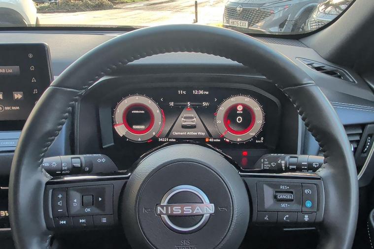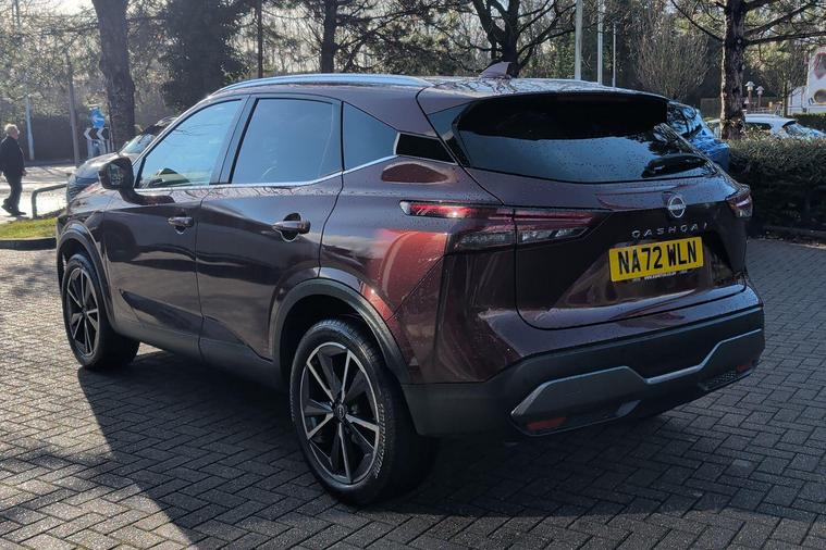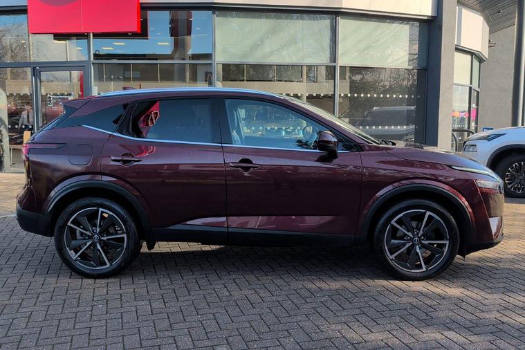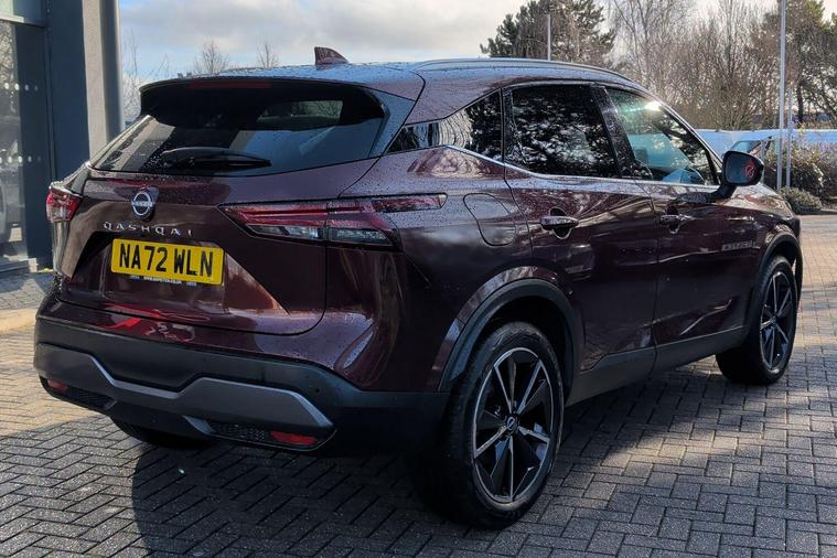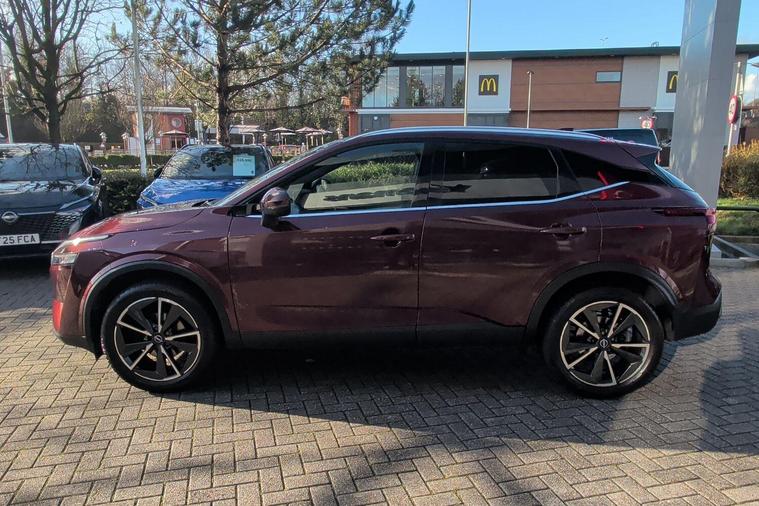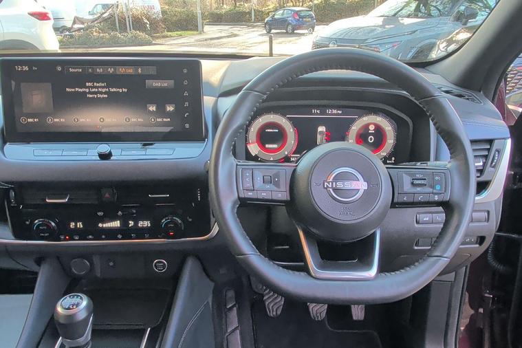 This 2022 Nissan Qashqai DIG-T Tekna is a Nissan manufacturer approved vehicle, offering peace of mind with its proven history. Powered by an efficient 1.3L Petrol Hybrid engine and meeting Euro 6 emissions standards, this Tekna trim model combines modern technology with practicality. It comes equipped with Intelligent Blind Spot Intervention, a Rear View Camera for easier parking, and Wireless Apple CarPlay for seamless smartphone integration. You'll also appreciate the advanced LED Headlights with Adaptive Driving Beam for improved visibility and the Advanced Windscreen Head Up Display, keeping key information in your line of sight.The Qashqai DIG-T Tekna stands out with its generous boot space, providing ample room for all your needs. Furthermore, its low insurance group rating indicates that running costs are kept to a minimum, making it a more economical choice compared to similar vehicles. These highlights demonstrate how this Nissan Qashqai offers a superior ownership experience..