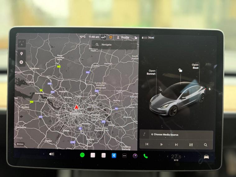 This 2020 Tesla Model 3 Long Range boasts a single owner from new, offering a pristine example of electric motoring. As a Long Range variant, this four wheel drive electric vehicle features a substantial 78 kWh battery, providing an impressive maximum range of 360 miles when new. Convenience is key with features like a heated steering wheel, front parking sensors for easier manoeuvring, and inductive charging mats for two smartphones. Keyless entry and go add to the seamless user experience, while the blind spot information system enhances safety on every journey.Experience exhilarating performance with this Model 3, capable of accelerating from 0 to 60 mph in a remarkable 4.2 seconds, a figure that sets it apart from many other vehicles in its class. The rapid charging capability is another significant advantage, with the ability to reach 80% charge in just 26 minutes at a public charging station, and a full charge at home taking approximately 12 hours. Beyond its dynamic capabilities and efficient charging, this Tesla Model 3 also offers generous boot space, making it a practical choice for everyday use and longer trips alike..