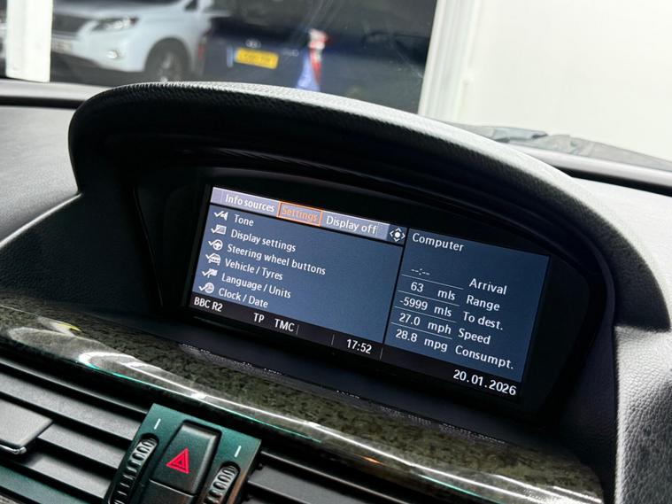 An excellent example of the elegant and powerful BMW 6 Series 630i Sport Steptronic, finished in a sleek black exterior. This luxury coupe delivers smooth and responsive six-cylinder petrol performance, paired with the refined Steptronic automatic transmission for effortless cruising. With its timeless design, Sport trim styling, and high-quality interior, it’s ideal for drivers seeking comfort, performance, and prestige in a sophisticated grand tourer.Key Features Include:Front and rear parking sensors Black leather seats Heated seatsCruise Control Automatic headlights Bluetooth connectivityAlloy wheelsElectric windows2 keys This vehicle comes with 3 doors, 4 seats, and has covered 67, 423 miles. It was first registered in 2008, runs on Petrol, and features an Automatic gearbox.The car is ULEZ compliant, HPI clear and has a valid MOT until January 2027.Please Note:This vehicle is sold as seen on a trade sale basis and does not come with a warranty, making it suitable for trade buyers or customers seeking a budget-friendly deal.What’s Included:1 year of free AA breakdown coverPart exchange welcomeDrive-away insurance and servicing available at an additional cost We also offer nationwide delivery at an additional cost—have the car delivered directly to your door, or visit our dealership to view and collect at a time that suits you.Visit or Contact Us - We’re open 7 days a week? Unit E4, Middlesex Business Centre, Bridge Road, Southall, London, UB2 4AB? Contact us today to arrange a viewing and a test drive.