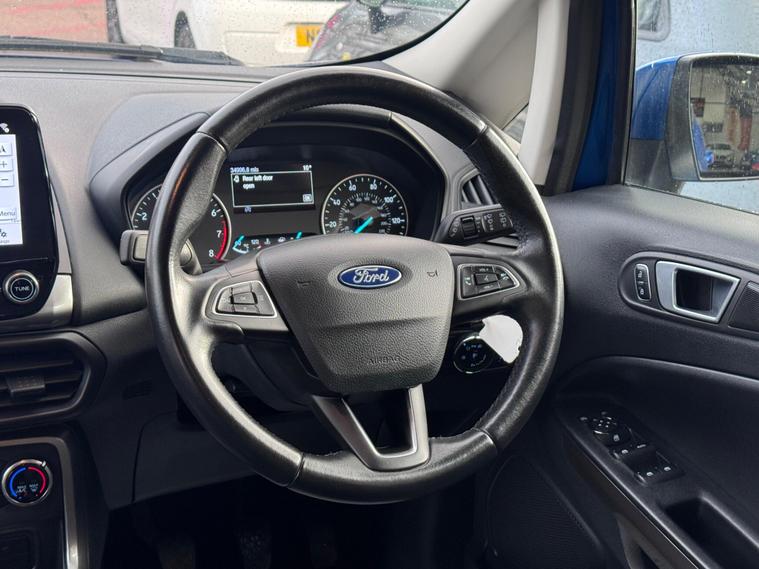 ***READY TO DRIVE AWAY***This 2018 Ford EcoSport Zetec is a standout example, boasting a single owner from new and an exceptionally low mileage of just 34, 915 miles. This T Zetec variant is powered by an efficient 1.0L petrol engine and meets Euro 6 emissions standards. It comes with a clear vehicle history check and a full service history, with the last service completed on 20 August 2025. The MOT is valid until December 2026, and the vehicle is offered with a 3 month warranty for your peace of mind.You can enjoy your journeys with the convenience of manual air conditioning and stay connected with the Ford DAB Radio featuring Ford SYNC3, which seamlessly integrates Apple CarPlay and Android Auto. The EcoSport Zetec also offers impressive fuel economy, achieving a highlight of 53 miles per gallon, and benefits from low CO2 emissions, making it a more economical choice compared to many similar vehicles..