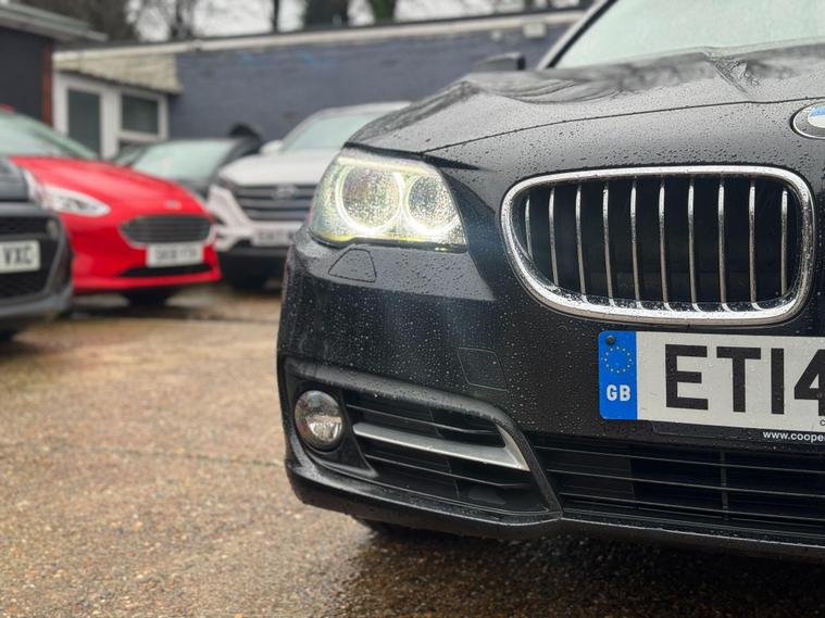 This 2014 BMW 5 Series 520d SE is a standout example, having been cherished by just one owner from new and boasting a remarkably low mileage for its age. Powered by an efficient 2.0L Diesel Engine, this Euro 6 compliant model offers an impressive fuel economy of 63 mpg, making it an economical choice for both daily commutes and longer journeys. The SE trim level ensures a comfortable and well equipped driving experience, further enhanced by features such as LED Fog Lights for improved visibility and stylish 18in Alloy Wheels in a Light Multi-spoke Style 454. Inside, the Fineline Anthracite Wood interior trim adds a touch of sophistication, while the Enhanced Bluetooth Telephone Preparation with USB Audio Interface and Voice Control keeps you connected and entertained on the go. BMW Online services are also included, providing access to a range of useful digital features.The generous boot space offers practicality for all your needs, whether it's luggage for a weekend away or shopping. This BMW 5 Series also stands out with its low CO2 emissions, indicating a more environmentally conscious performance compared to many other vehicles in its class. The combination of its single ownership, low mileage, excellent fuel efficiency, and thoughtful features makes this 520d SE a compelling proposition for anyone seeking a premium saloon that balances performance, economy, and comfort..