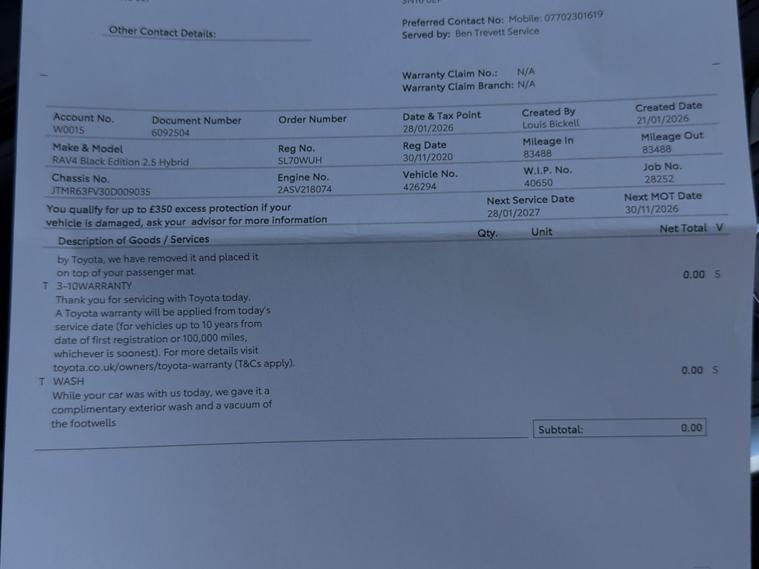 1 year toyota warranty Just had its full service with toyota SURROUND CAMERA2 KEYS1 FORMER OWNERLink to the Toyota Service inspection Report: => https:/ dealer's website
