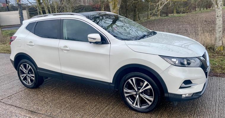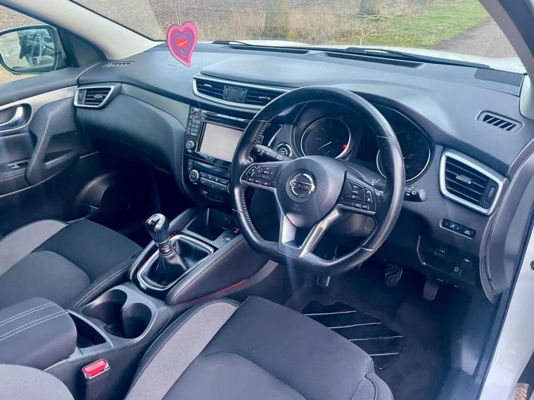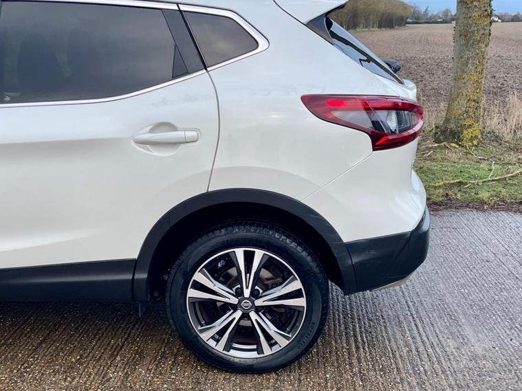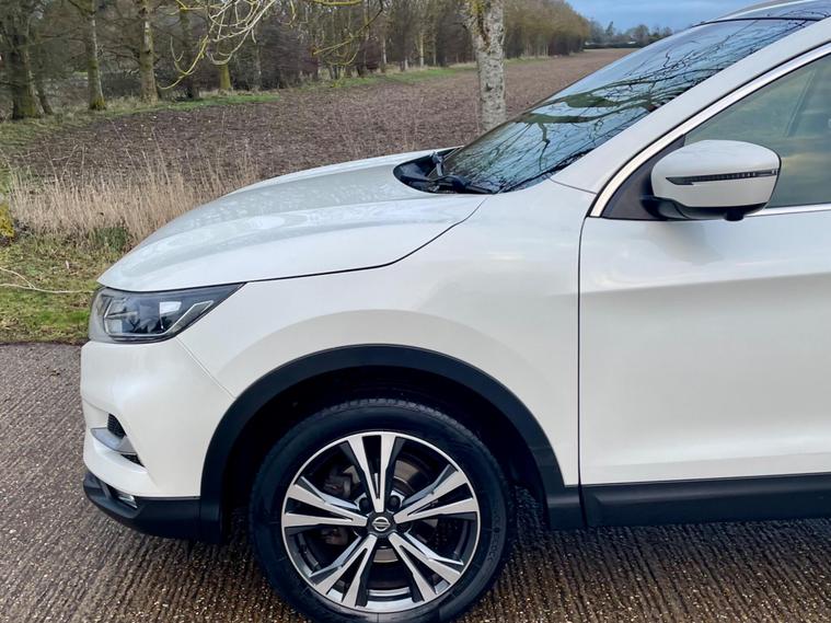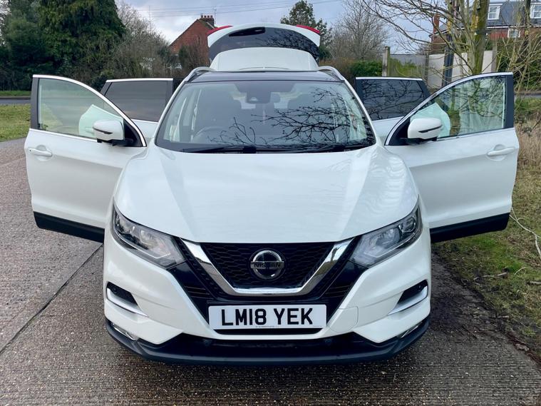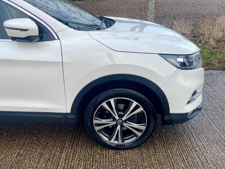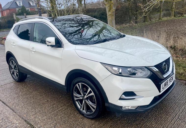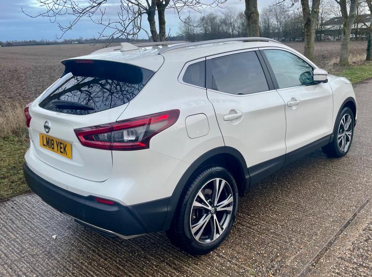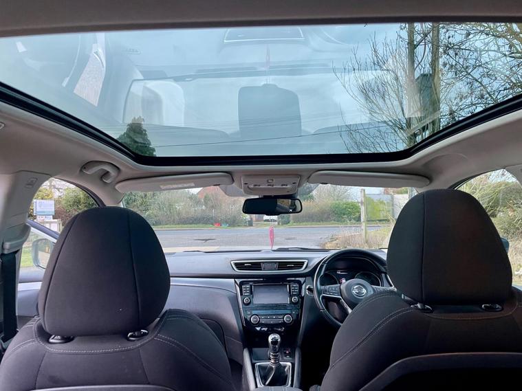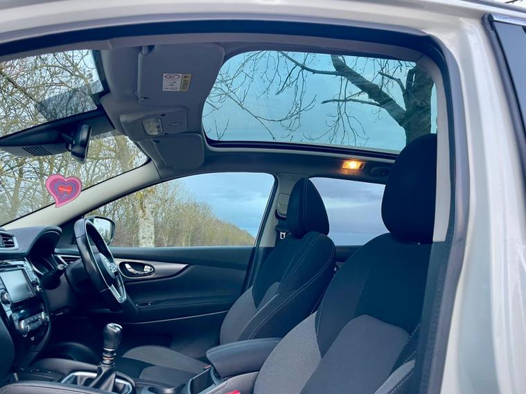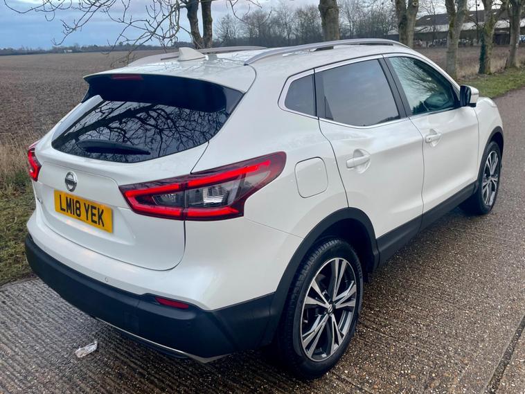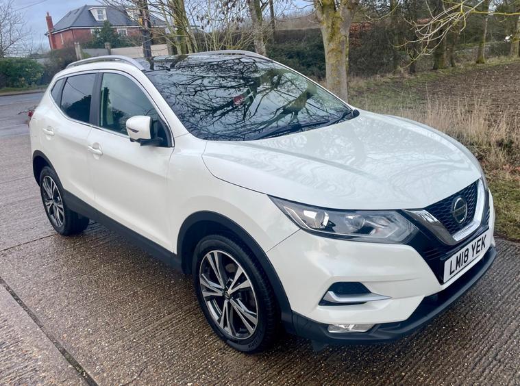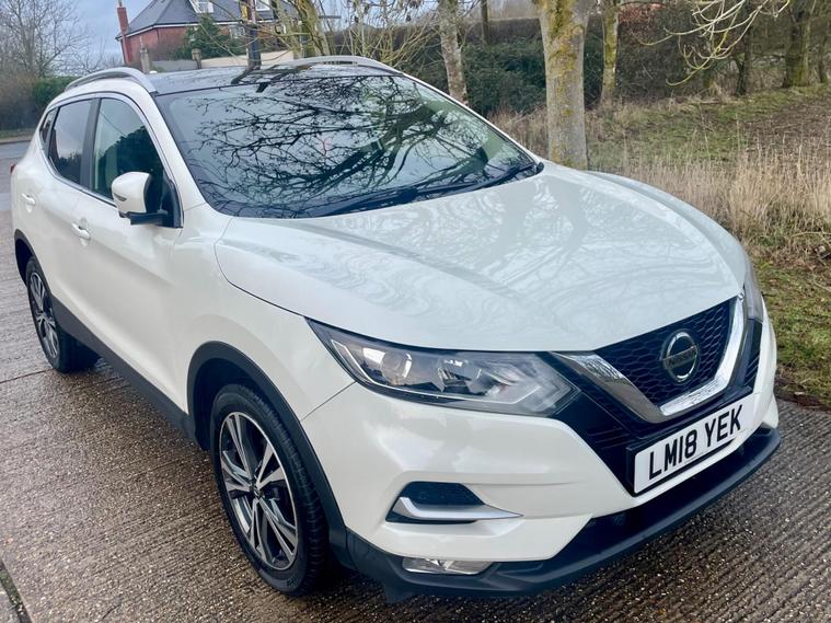 This 2018 Nissan Qashqai DIG-T N-Connecta benefits from a 12 month MOT provided on purchase, offering peace of mind for the road ahead. This Euro 6 compliant 1.2 litre petrol model comes with a 3 month warranty and partial service history. It features the desirable Glass Roof Pack, which includes a fixed panoramic sunroof, and the Tech Pack, adding a rear parking camera and rear parking sensors. The Smart Vision Pack further enhances parking assistance with front and rear sensors, complemented by keyless entry via the Intelligent Key.This Qashqai stands out with its impressive fuel economy, achieving up to 50 miles per gallon, and its low CO2 emissions. Its low insurance group also indicates that running costs are kept to a minimum, making it a more economical choice compared to similar vehicles..
