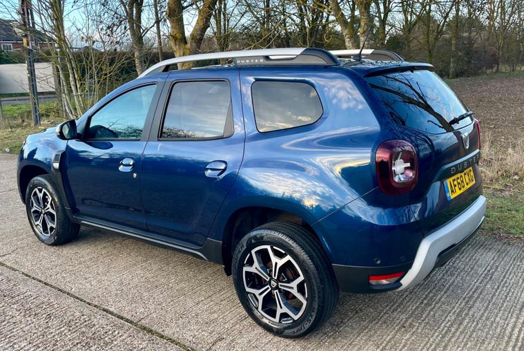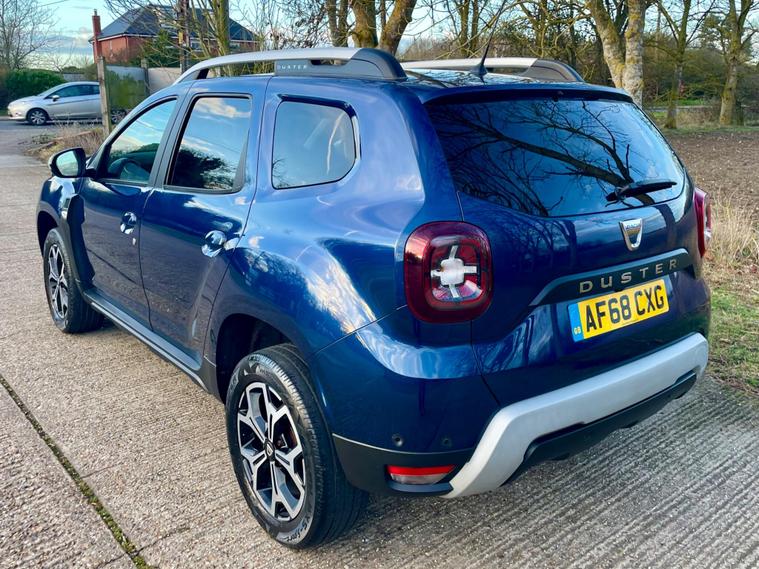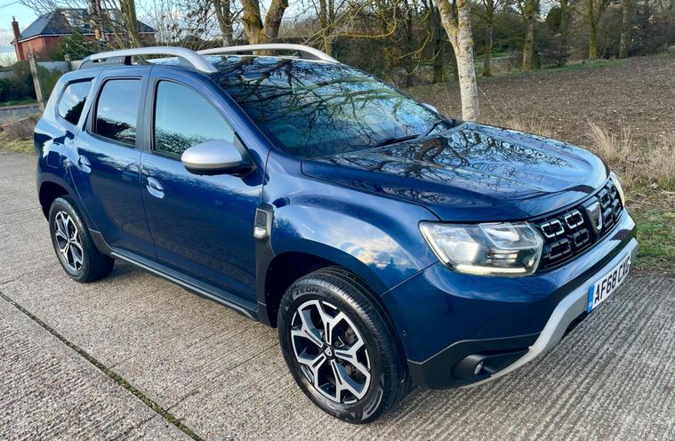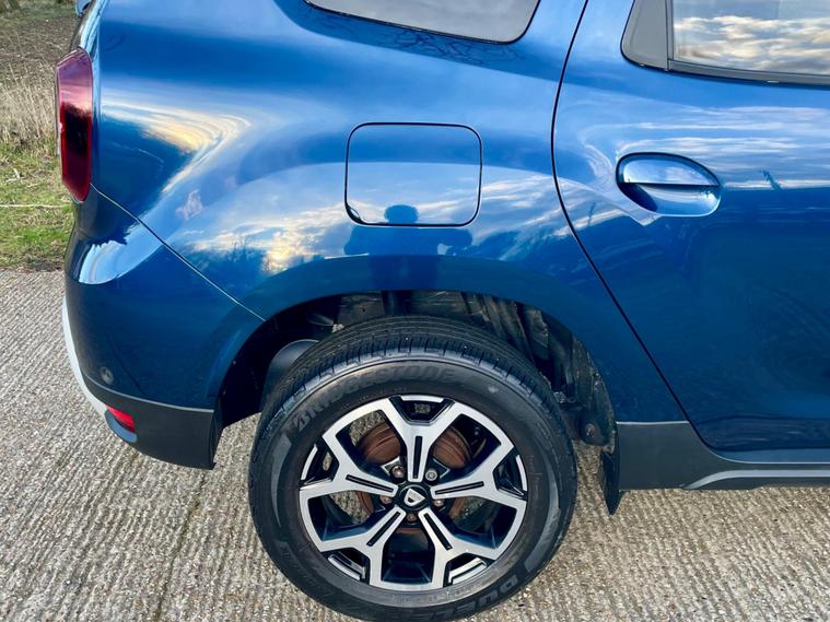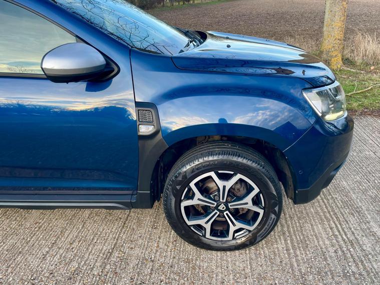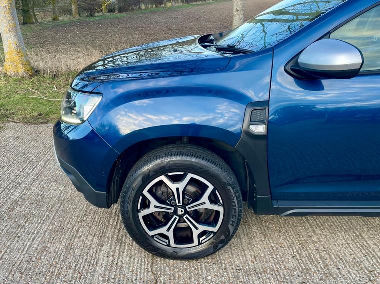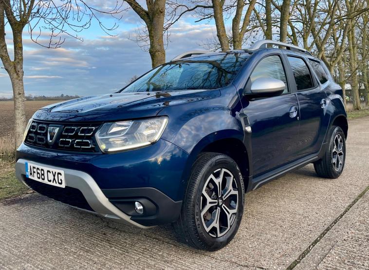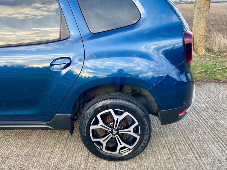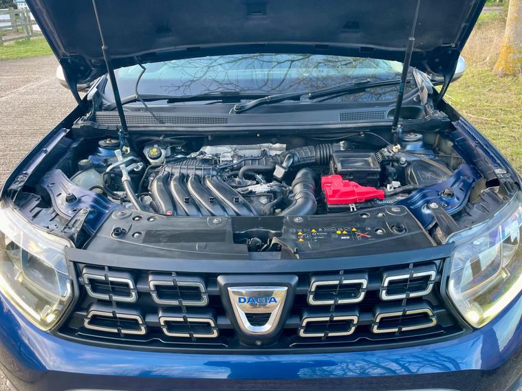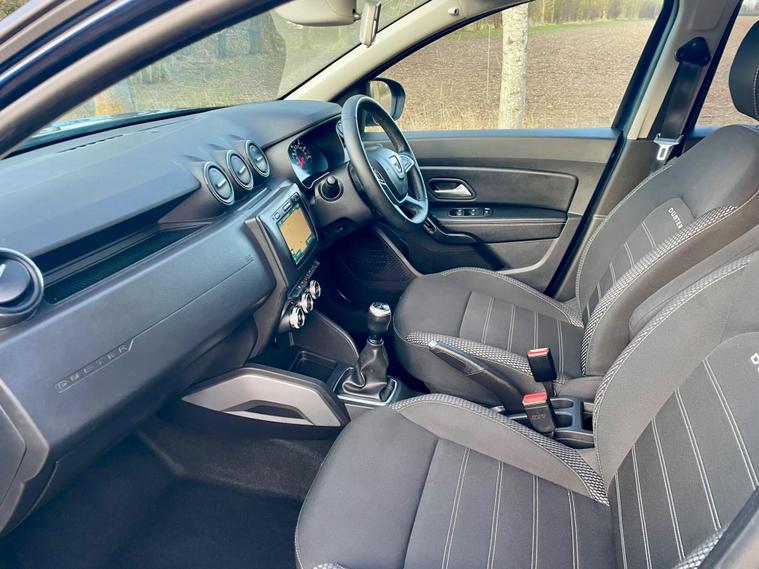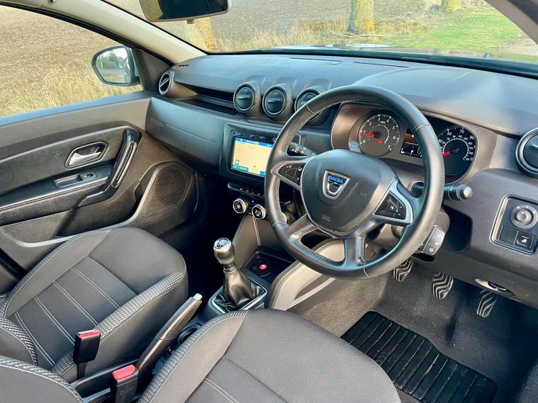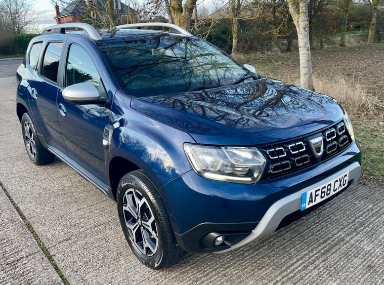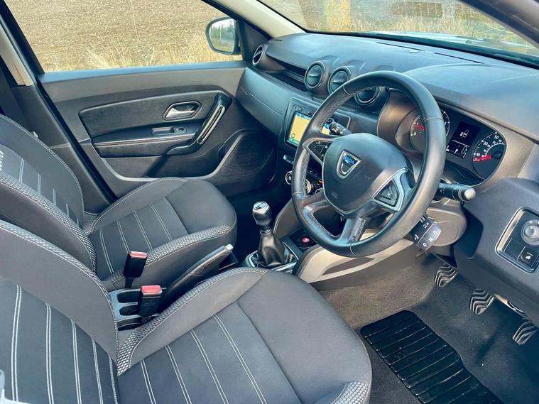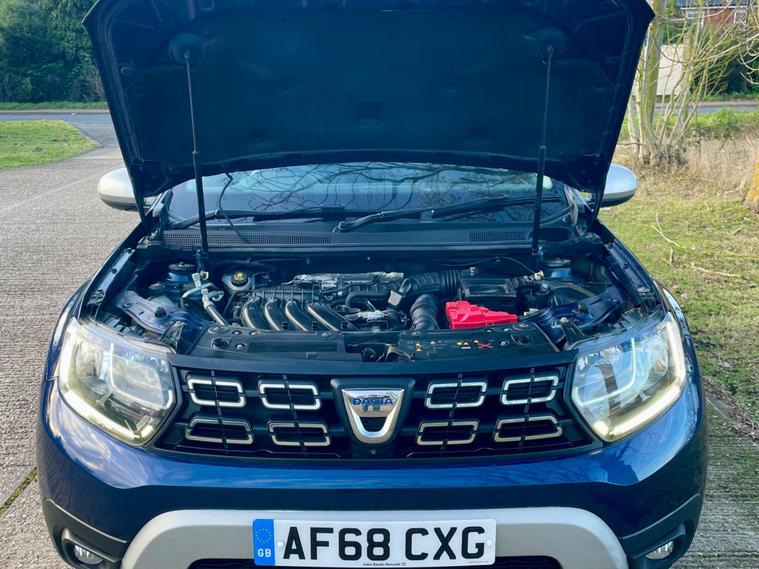 This 2018 Dacia Duster SCe Prestige is offered with a 12 month MOT for your peace of mind. This Euro 6 compliant 1.6 litre petrol model comes with a 3 month warranty and partial service history. The Prestige trim level ensures you benefit from a range of desirable features, including full LED headlamps, auto air conditioning with climate control, and Bluetooth connectivity.The Dacia Duster SCe Prestige stands out with its advanced Blind Spot Warning system, which includes Blind Spot Assistance, and the Multi View Camera Plus system. This comprehensive parking assistance suite features a 360 degree camera along with front and rear sensors, making manoeuvring easier. Furthermore, its low insurance group rating indicates that running costs are kept competitive compared to similar vehicles..