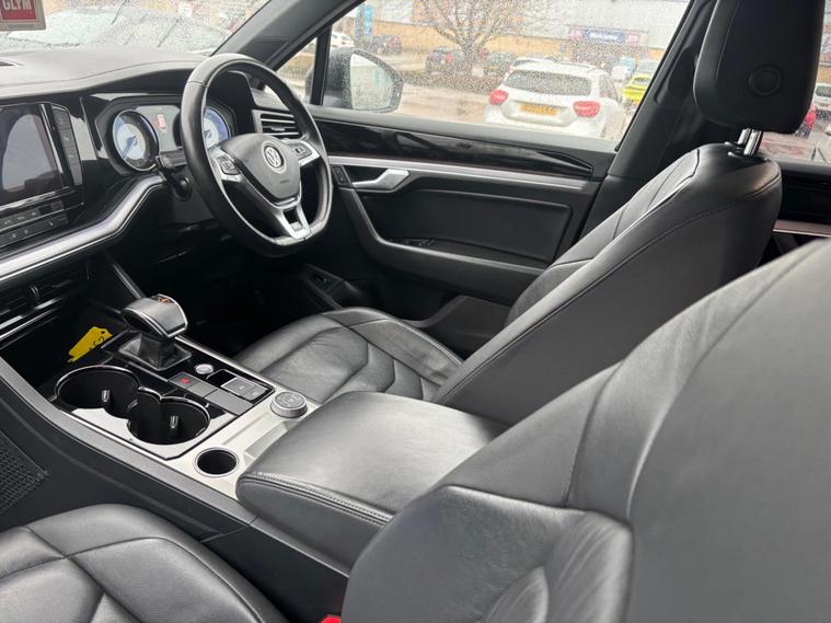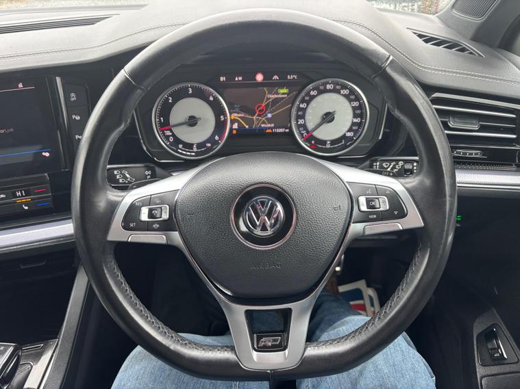 WE ARE PLEASED TO OFFER THIS HIGHLY DESIRABLE HIGH SPECIFICATION HIGHLY MAINTAINED FOUR WHEEL DRIVE EURO SIX VOLKSWAGEN TOUAREG 3.0 TDI V6 R-LINE TIPTRONIC 4MOTION AUTOMATIC FIVE DOOR + FINISHED IN THE BEST COLOUR OF DEEP BLACK PEARLESCENT AND IS COMPLEMENTED WITH A FULL BLACK VIENNA LEATHER UPHOLSTERY + ONLY A SENSIBLE MOTORWAY MILEAGE OF 113, 206 MILES HAS BEEN COVERED IN TOTAL BY TWO OWNERS + LAST PROFESSIONAL OWNER SINCE JUNE 2023 AND IS BACKED WITH AN EXCELLENT SERVICE HISTORY + THE SERVICES HAVE BEEN CARRIED OUT 19201 MILES, 30932 MILES, 59622 MILES, 68554 MILES, 79795 MILES, 90974 MILES AND 110419 MILES WHICH WAS CARRIED OUT BY VAGWORX ON THE 31ST OF OCTOBER 2025 + OUTSTANDING CONDITION THROUGHOUT AND DRIVES SUPERB + 286 BHP MODEL + FULL R-LINE SPECIFICATION WHICH INCLUDES DISCOVERY PRO SATELLITE NAVIGATION / PARK ASSIST WITH PARKING DISTANCE CONTROL FRONT AND REAR WITH REAR VIEW CAMERA / HEATED FRONT SEATS AND STEERING WHEEL / APPLE AND ANDROID CAR PLAY / 20'' MULTI SPOKE TWO TONE BRAGA ALLOY WHEELS WHICH ARE FITTED WITH BRIDGESTONE TYRES ALL ROUND / TINTED GLASS / ADAPTIVE CRUISE CONTROL / FULL ELECTRIC PACK / FRONT WIRELESS PHONE CHARGER / MULTI FUNCTION LEATHER STEERING WHEEL / POWER TAILGATE / DYNAMIC LED HEADLIGHTS / WHITE AMBIENT INTERIOR LIGHTING PLUS MUCH MORE + HANDBOOK PACK + DIGITAL PRINTOUT SERVICE HISTORY + 2 X KEYS + ANY TRIAL OR INSPECTION IS WELCOMED + HPI CLEAR WITH CERTIFICATE + SIX MONTHS NATIONWIDE WARRANTY IS INCLUDED + VOLKSWAGEN BUILD QUALITY + VIEWING IS ESSENTIAL TO APPRECIATE THIS MUCH SOUGHT AFTER PRESTUGE FOUR WHEEL DRIVE. We have been established in Baildon for over 20 years. All our vehicles are fully inspected, prepared and valeted. We are finance specialists. Part exchange is welcome. All major credit and debits accepted. Open 7 days. Our postcode is BD177EX..