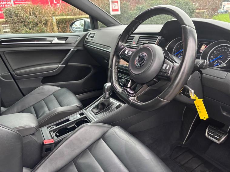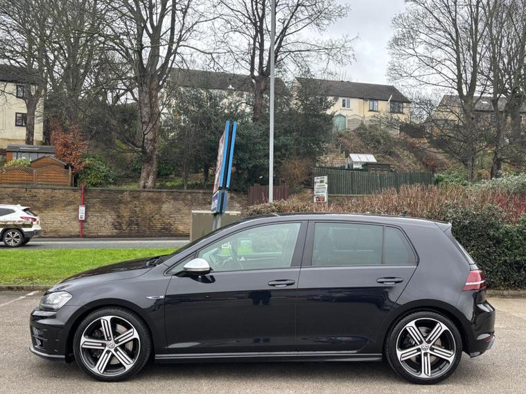 WE ARE PLEASED TO OFFER THIS HIGHLY DESIRABLE HIGH SPECIFICATION HIGHLY MAINTAINED RARE LOW OWNERSHIP TOTALLY STANDARD AND UNMODIFIED VOLKSWAGEN GOLF 2.0 TSI BLUEMOTION TECH R DSG 4 MOTION EURO SIX FIVE DOOR + FINISHED IN THE BEST COLOUR OF DEEP BLACK METALLIC PAINTWORK AND IS COMPLEMENTED WITH A FULL BLACK VIENNA LEATHER UPHOLSTERY + ONLY 81, 281 MILES HAS BEEN COVERED IN TOTAL BY TWO OWNERS IN TOTAL AND IS BACKED WITH AN OUTSTANDING SERVICE HISTORY WHICH IS COMPRISED OF NINE SERVICES ( EIGHT OF WHICH HAVE BEEN CARRIED OUT BY A VOLKSWAGEN SPECIALIST ) + THE SERVICES HAVE BEEN CARRIED OUT AT 10437 MILES, 18913 MILES, 32508 MILES, 40404 MILES, 47614 MILES, 56373 MILES, 61455 MILES , 74752 MILES AND 85890 MILES + THIS SERVICE WAS CARRIED OUT BY GERMAN AUTO CARE OF PUDSEY AND INCLUDED THE HALDEX SERVICE, GEARBOX SERVICE PLUS NEW DISCS AND PADS ALL ROUND + THE MOT IS TILL THE 18TH OF JANUARY 2027 + EXCELLENT CONDITION THROUGHOUT AND DRIVES SUPERB + 300 BHP MODEL WITH FOUR WHEEL DRIVE HANDLING + FULL R SPECIFICATION WHICH INCLUDES SATELLITE NAVIGATION / HEATED FRONT SEATS / DAB TUNER / CRUISE CONTROL / FULL ELECTRIC PACK WITH POWERFOLD DOOR MIRRORS / REAR TINTED GLASS / FRONT SPORT SEATS / PARK PILOT WITH FRONT AND REAR PARKING SENSORS / 18'' FIVE DOUBLE SPOKE ALLOY WHEEL WHICH ARE FITTED WITH BRIDGESTONE TYRES ALL ROUND / MEDIA PACK / DAB TUNER / CRUISE CONTROL / MULTI FUNCTION LEATHER STEERING WHEEL / ONBOARD COMPUTER PLUS MUCH MORE + HANDBOOK PACK + STAMPED SERVICE BOOK WITH INVOICES AND RECEIPTS + 2 X KEYS + ANY TRIAL OR INSPECTION IS WELCOMED + HPI CLEAR WITH CERTIFICATE + SIX MONTHS NATIONWIDE WARRANTY IS INCLUDED + THIS TRULY CHERISHED EXAMPLE MUST BE VIEWED TO BE APPRECIATED AND MUST NOT BE CONFUSED WITH LESSER EXAMPLES AVAILABLE. We have been established in Baildon for over 20 years. All our vehicles are fully inspected, prepared and valeted. We are finance specialists. Part exchange is welcome. All major credit and debits accepted. Open 7 days. Our postcode is BD177EX..
