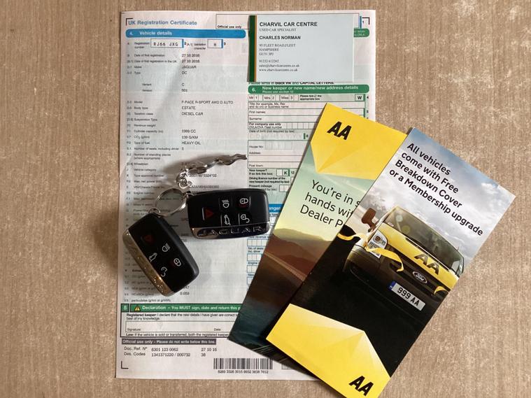 This 2016 Jaguar F-PACE D180 R-Sport boasts an exceptional provenance, having been owned by just one person from new and showing a low mileage of 68, 206 miles for its age. This stylish SUV features a powerful yet efficient 2.0L Euro 6 diesel engine paired with a Four Wheel Drive system, ensuring confident handling in all conditions. The R-Sport trim level adds a touch of sportiness, and you'll appreciate the convenience of Bluetooth telephone connectivity, Xenon headlights with automatic activation, and rear parking aid. Inside, the 2-Zone climate control ensures comfort for all occupants.With an impressive fuel economy of 53 mpg, this F-PACE offers excellent running costs, making it a more economical choice than many similar vehicles. Its substantial boot space provides ample room for luggage or shopping, while the brisk acceleration of 0-60mph in just 8.2 seconds demonstrates its dynamic performance. Furthermore, its towing weight of 2400 kg means it's ready for whatever life throws at it. Established in 1992, we are a family-run business, all our vehicles are carefully sourced and each one undergoes a thorough appraisal and road test prior to being offered for sale.We are committed to delivering a trustworthy five-star customer experience with transparency and integrity at the heart of everything we do.We are also offering a “BUY IT ONLINE” facility dealing with all enquiries remotely and the usual assurances, A PRE-DELIVERY SERVICE, 12 MONTH’S MOT, 12 MONTH’S AA BREAKDOWN COVER, A COMPREHENSIVE 3 MONTH GUARANTEE & FREE DELIVERY within a 30 mile radius of our showroom. We will deal with all paperwork relating to transfers and taxation and also assist you with finance or part exchange enquiries. If you require any further info please contact us on 01252270627 or email sales dealer's website Thank you for viewing our vehicles.Charles, Chris & Steven.