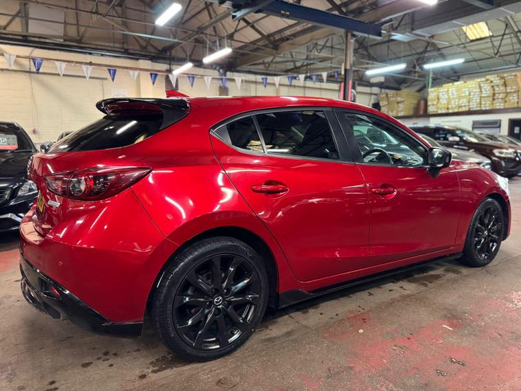 ? Sport Black Edition ? Euro 6 / ULEZ Exempt ? £35 Road Tax ? Huge Specification ?This Mazda3 2.0 SKYACTIV-G Sport Black is an outstanding example of a sporty yet practical hatchback, offering strong performance, premium features, and excellent reliability. Powered by Mazda’s renowned 2.0 SKYACTIV-G petrol engine, it delivers a smooth, responsive drive while remaining economical and ULEZ / emissions charge exempt.Finished in the desirable Sport Black trim, this car boasts an exceptionally high specification, making it a rare find in this class. It also benefits from FOUR BRAND NEW TYRES just fitted and sits on striking 18-inch dark alloy wheels, giving it a sharp, confident stance.✅ Rear Reversing Camera & Rear Parking Sensors✅ Heated Front Seats & Heated Steering Wheel✅ Satellite Navigation✅ Bluetooth Media & Hands-Free Calling✅ BOSE Premium Surround Sound System (9 Speakers)✅ Dual-Zone Climate Control✅ Cruise Control with Speed Limiter✅ Smart Keyless Entry & Push Button Start✅ LED Headlights & Daytime Running Lights✅ Privacy Glass & Sport Black Styling✅ Only £35 annual road tax? The Mazda3 is well known for its excellent handling, build quality, and driver-focused feel, while still offering strong practicality with a spacious cabin and split-folding rear seats—perfect for daily driving or longer journeys.? EMISSIONS CHARGE / ULEZ EXEMPT!Enjoy a FREE 6-month warranty and breakdown cover with your purchase.We offer flexible finance options, including zero deposit plans, and can assist customers with low or poor credit scores—contact us for a no-obligation quote.? With over 100 vehicles in stock, please call ahead, as not all vehicles are kept on site.? Payments accepted via bank transfer only.? Contact us: 01163432676? View our stock: dealer's website